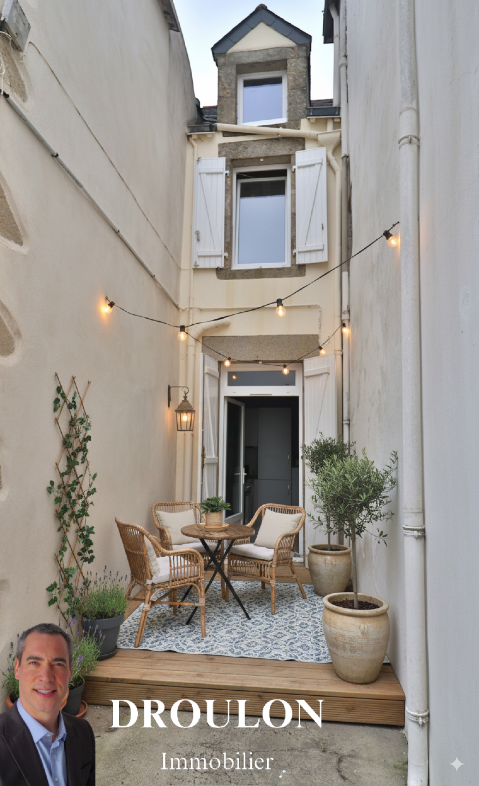 Côté extérieur : une cour privative à aménager selon vos envies pour plus d'intimité (proposition d'aménagement sur la photo).