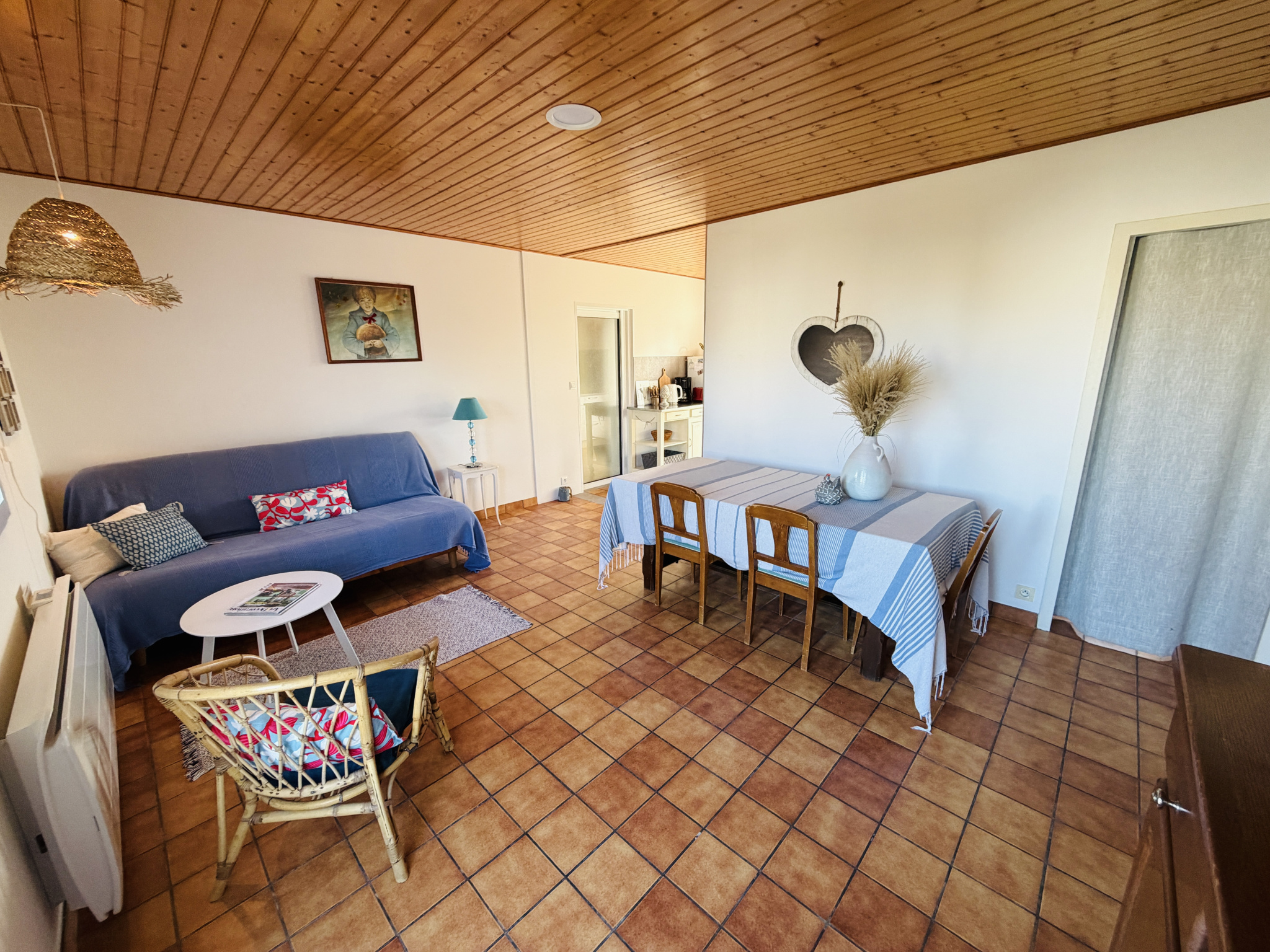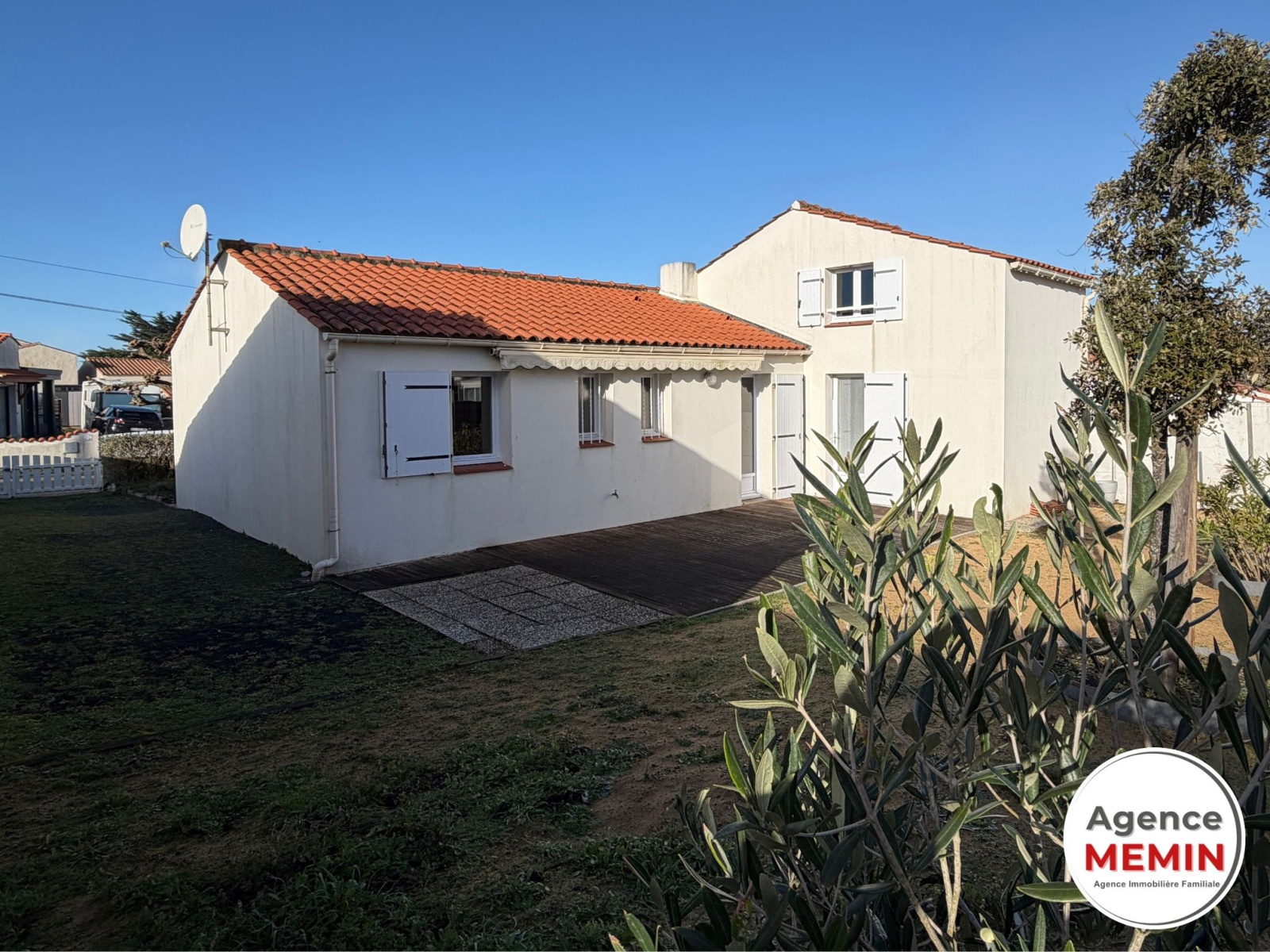 L'Agence MEMIN vous propose cette exclusivité cette jolie maison située à Brétignolles-sur-Mer. A seulement 400m de la plage, elle vous offre en plain-pied de vie : entrée sur pièce de vie lumineuse avec cuisine aménagée récente, 3 chambres dont 2 avec placards, une salle de bain, une salle d'eau et un wc. A l'étage : une grande chambre. Un garage vient compléter l'ensemble. Côté extérieur : le jardin est clos et agrémenté d'une terrasse et de son store banne électrique. Possibilité de stationner un camping-car. Les plus : radiateurs récents, bon entretien dont toiture propre, bon emplacement. Vidéo disponible sur demande.