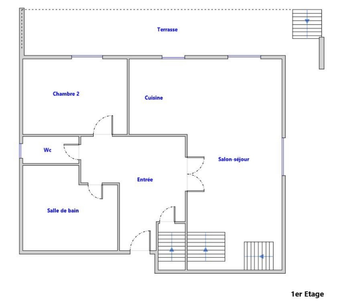 Au rez-de-jardin, l’entrée s’ouvre sur un séjour spacieux de 42,5 m² au plafond cathédrale, baigné de lumière grâce à son exposition plein sud. Un insert bois apporte chaleur et convivialité, tandis qu’un plancher en chêne met en valeur l’espace de vie. La cuisine de 12 m² ouverte sur le séjour bénéficie d’une belle  vue dégagée et d’un accès a l’extérieur . Ce niveau propose également une chambre, un toilette indépendant et une salle d’eau équipée d’une douche à l’italienne. On accède à une grande terrasse avec store électrique depuis le séjour.