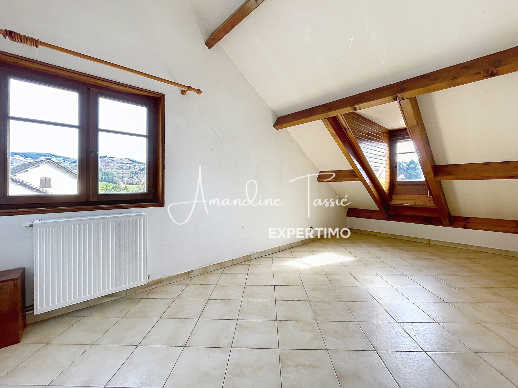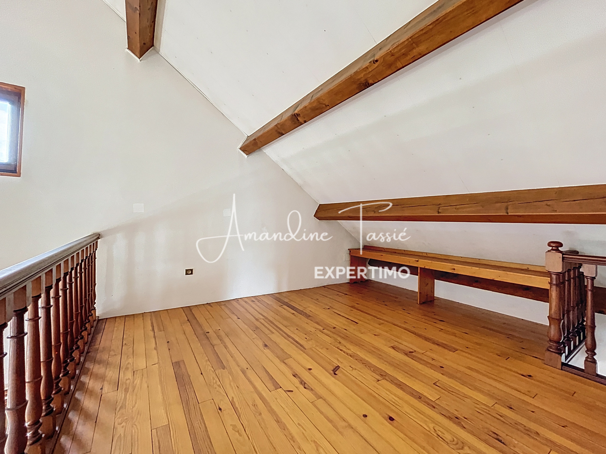 À l’étage, une mezzanine domine le séjour et créée un espace chaleureux idéal pour un bureau ou une bibliothèque. Un dégagement peut également servir de rangement ou d’espace de travail. Deux grandes chambres mansardées de 14 et 17 m² au sol viennent compléter l’espace nuit ainsi qu’une salle d’eau avec wc.Â