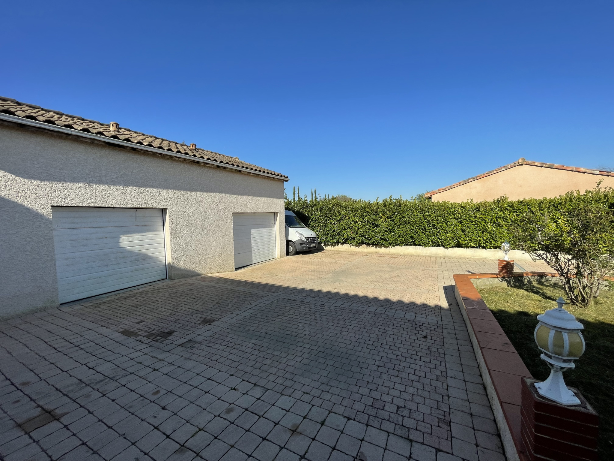 La maison dispose d'un double garage, non mitoyen, de 60m2.