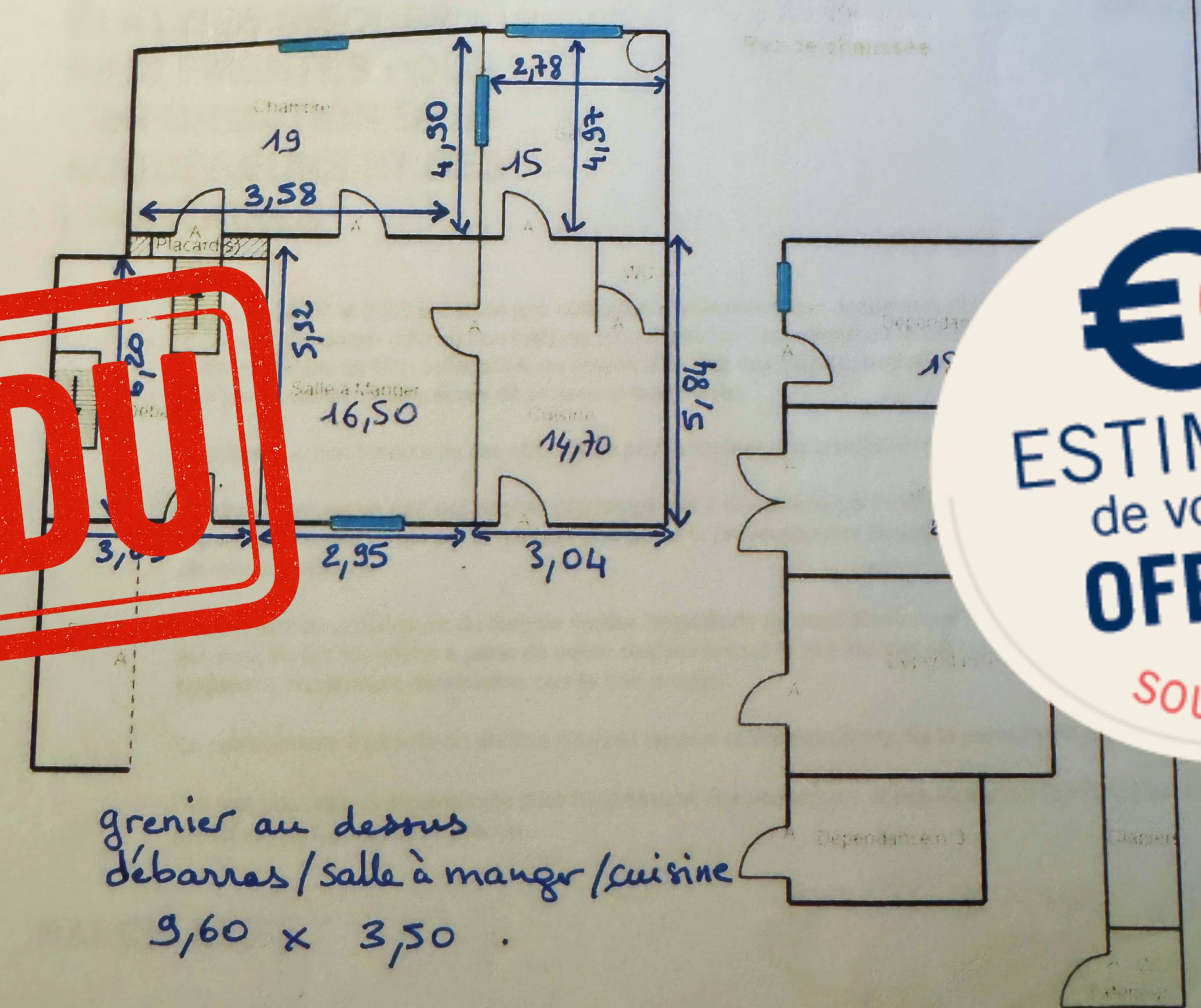 À l’étage, un vaste grenier (9,60m x 3,50m) peut être aménagé selon vos envies (chambres supplémentaires, atelier, etc.).