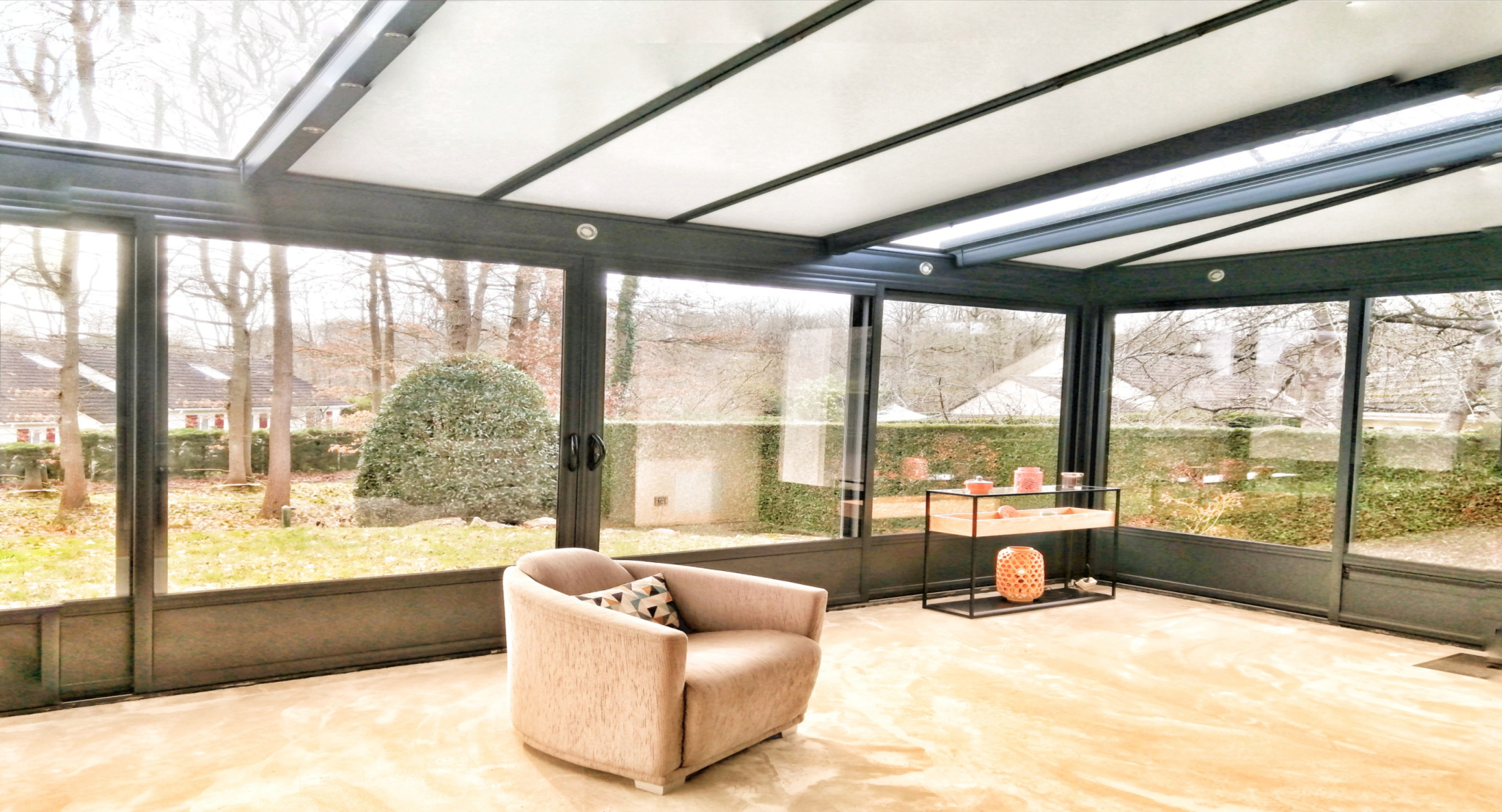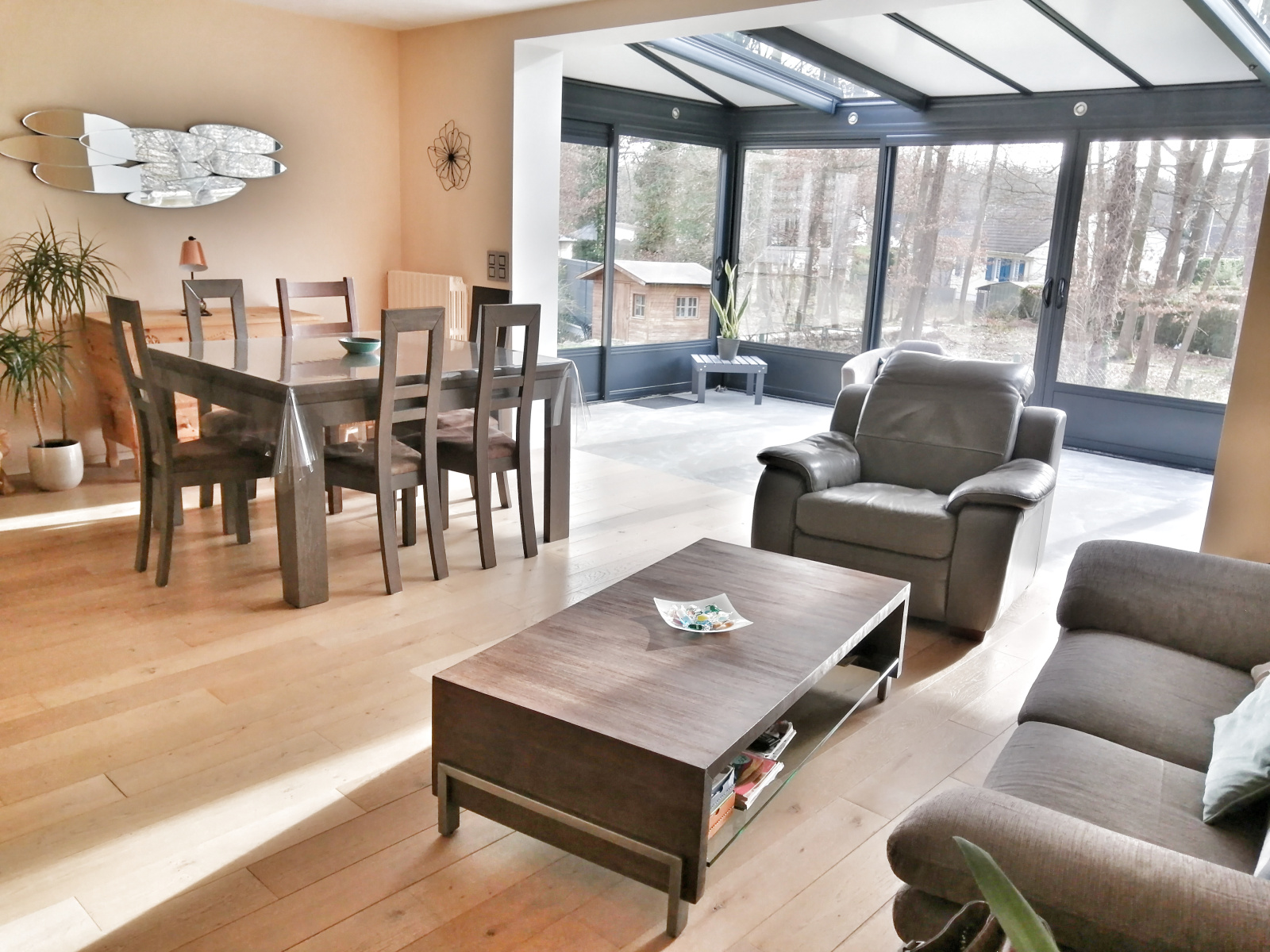 - une belle pièce de vie de 42 m2 lumineuse avec sa véranda donnant sur la terrasse côté jardin