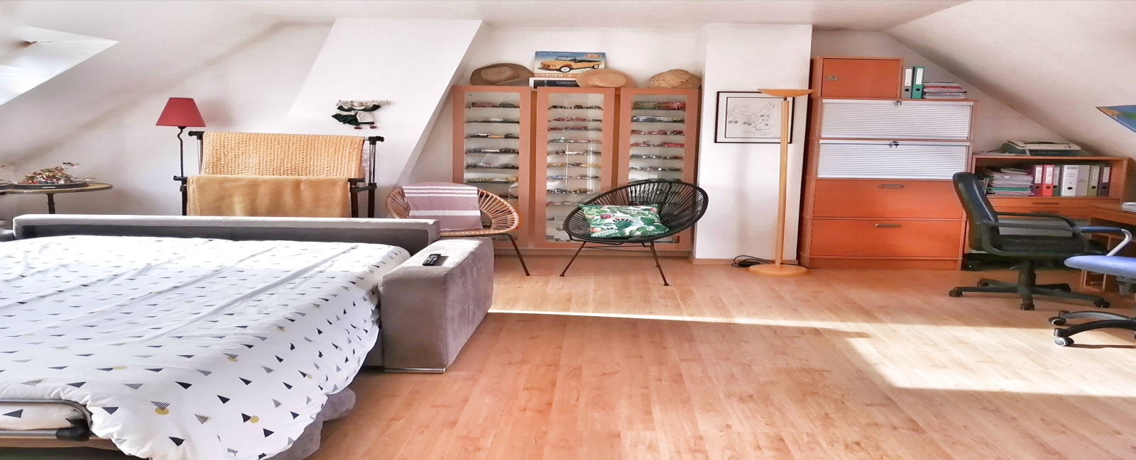 - une grande chambre de 40m2 extrêmement lumineuse, parquet flottant, climatisation, 3 grands velux