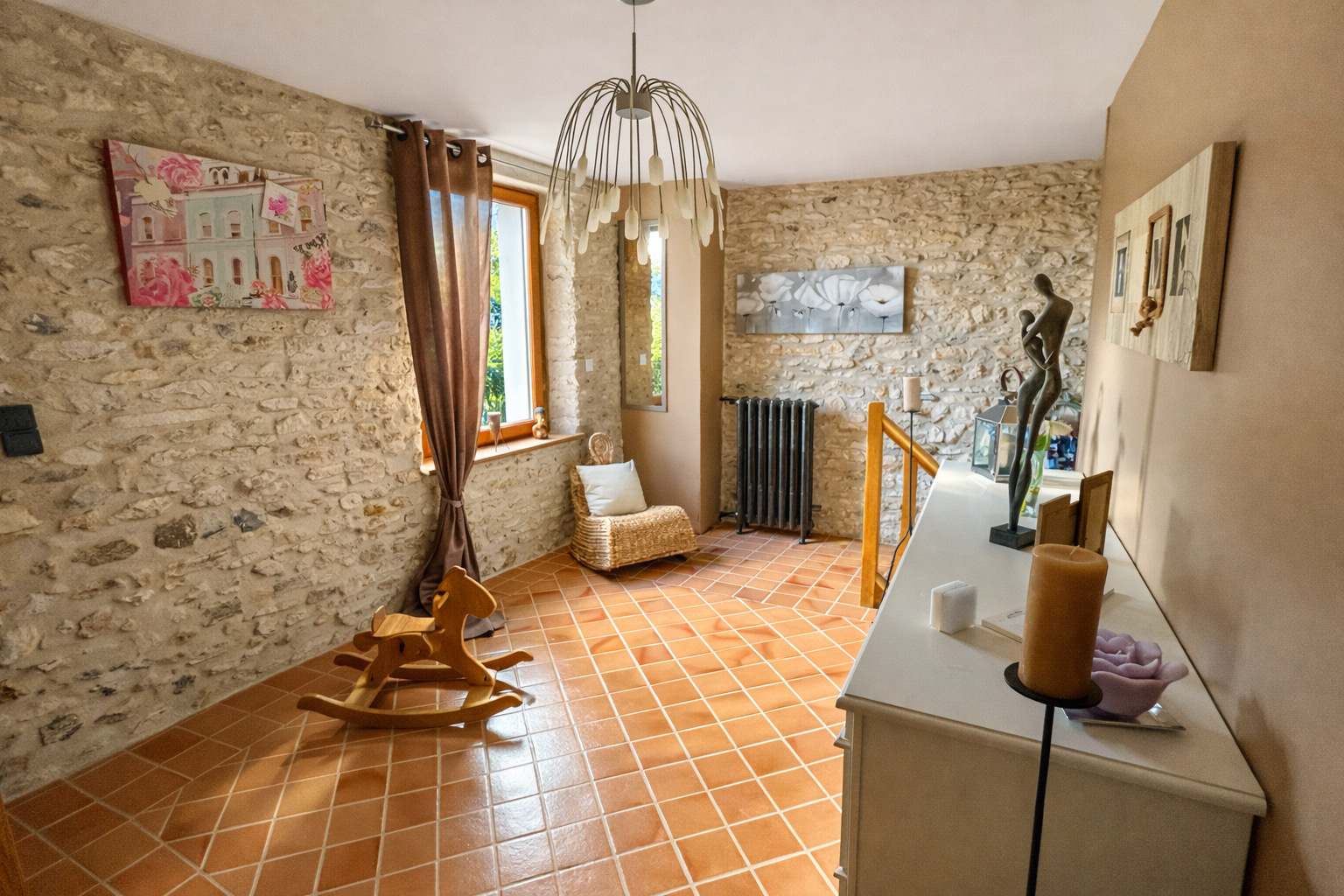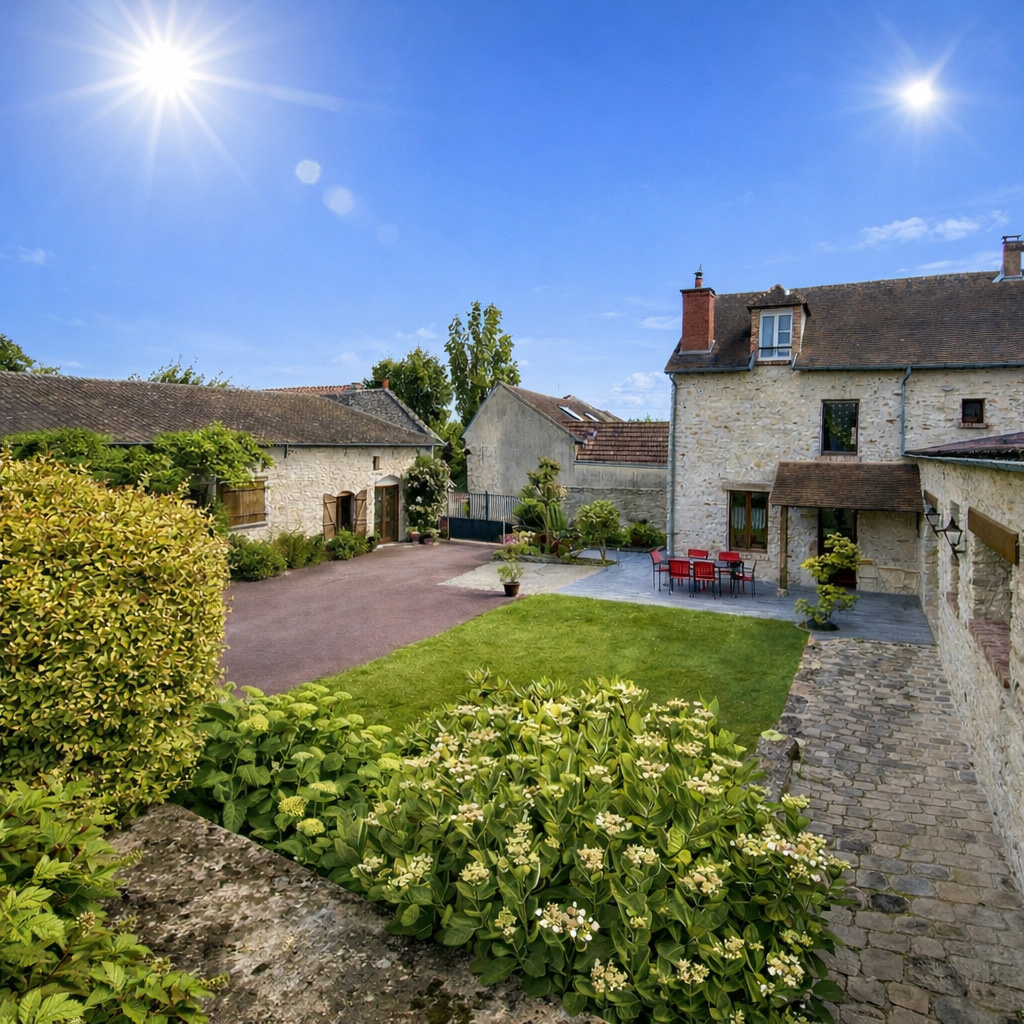 Corps de ferme rénové 255m² – dépendances – garages – fort potentiel – terrain 2 500 m² – À vendre, au cœur d’un hameau paisible superbe corps de ferme rénové, offrant 255m² habitables sur une parcelle arborée de 2 500 m², à l’abri des regards. Cette propriété de caractère séduit par ses volumes, son cachet ancien (poutres, pierre apparente) et ses nombreuses dépendances offrant un fort potentiel d’aménagement. ? Maison principale Au rez-de-chaussée : • Pièce de vie exceptionnelle de 70 m² avec grande baie vitrée sur cour intérieure piscinable • Salon cosy avec poêle • Bureau avec entrée indépendante (idéal chambre, activité libérale ou studio) • Cuisine lumineuse de 20 m² avec piano de cuisson + cellier • WC séparés À l’étage : • Palier lumineux • Chambre de +20 m² • Salle d’eau + WC Au second : • 2 chambres supplémentaires • 2? salle d’eau ? Dépendances & potentiel (gros point fort) • Bâtiment annexe avec 2 garages • Salle de jeux aménagée • Cave • Patio couvert avec volet roulant électrique • Espaces annexes offrant multiples possibilités : atelier, gîte, studio, télétravail, stockage ou projet locatif ???? Ensemble immobilier idéal pour projet familial, artisanal ou investissement ? Extérieurs • Jardin arboré et entretenu • Cour intérieure piscinable • Cadre verdoyant et calme absolu ? Les atouts • Aucun travaux à prévoir • Prestations de qualité • Charme de l’ancien • Fort potentiel grâce aux dépendances • Proximité immédiate A13, Buchelay, écoles et commodités ? Hameau recherché proche Buchelay 230 m² habitables 2 500 m² de terrain Dépendances avec garages, cave et espaces aménageables 3 à 5 chambres selon configuration 2 salles d’eau Honoraires charge vendeur.