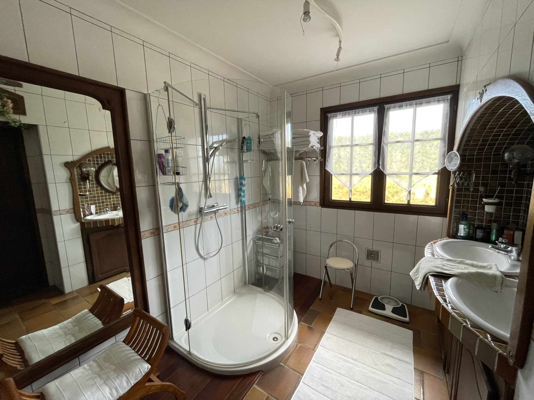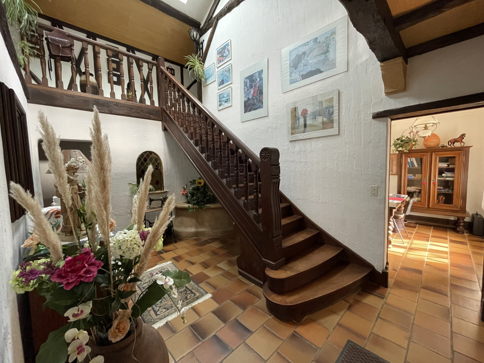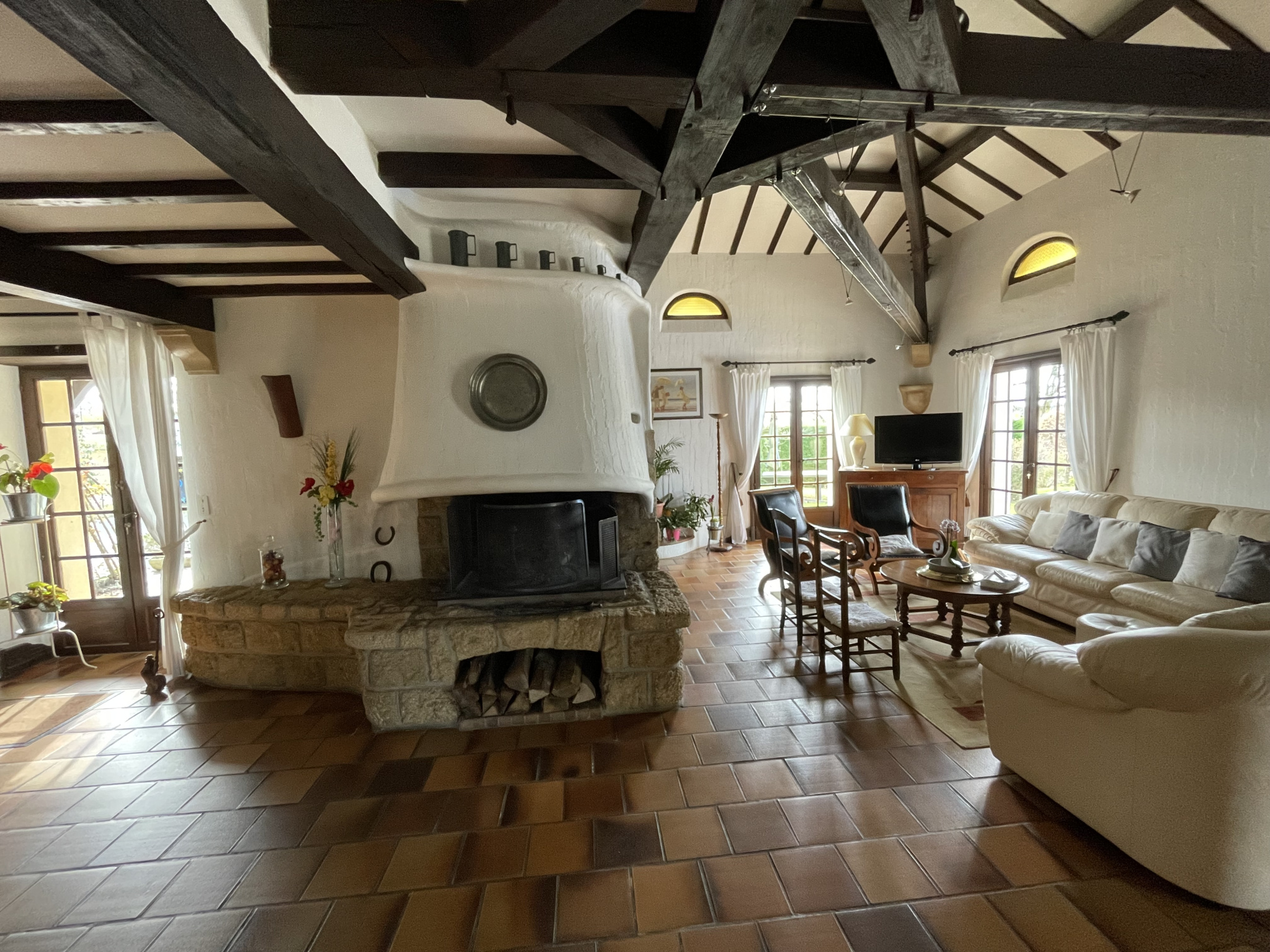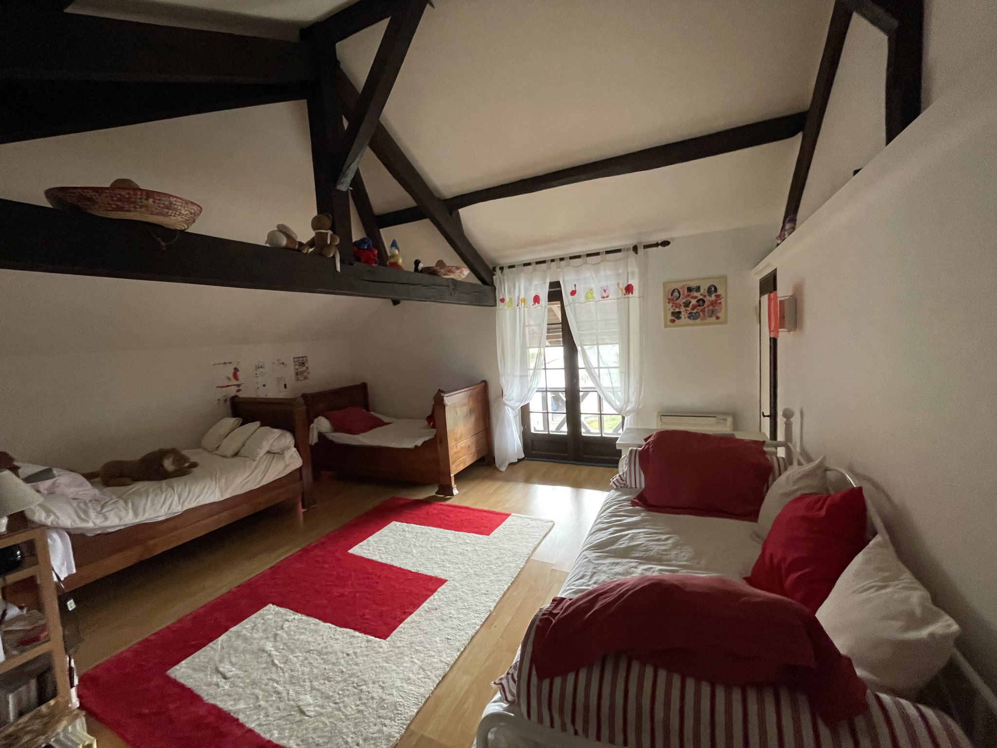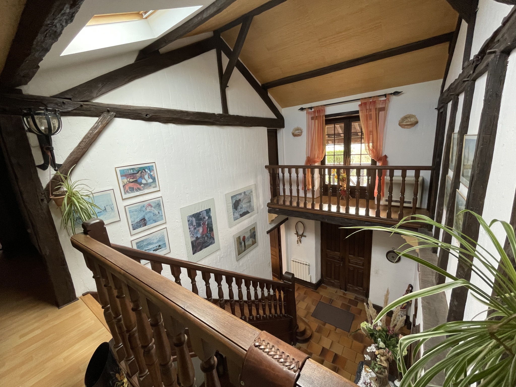 Le plafond cathédrale avec sa charpente apparente, sa luminosité, le volume des pièces et les annexes indispensables (buanderie, atelier) vous séduiront.