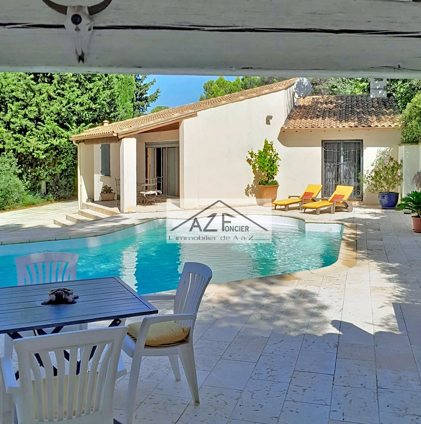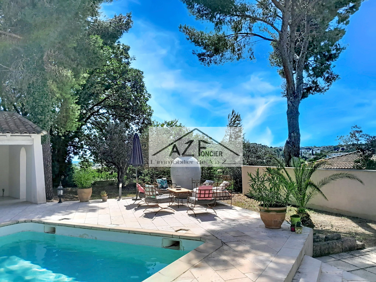 VILLA PLAIN PIED 120m2 SUR 1200m2 DE TERRAIN à 15 mn de Nîmes, villa construite en  traditionnel sur vide sanitaire en 1992 offrant un cadre de vie très agréable, exposition sud sur les hauteurs de Bellegarde en zone non inondable vue dégagée au calme, 3 belles chambres, une grande cuisine équipée, un très beau salon séjour, un bureau et une buanderie, salle de bain avec baignoire et douche , un grand garage de 20m², pas de travaux à prévoir, un très beau terrain avec piscine et pool house, à voir rapidement .. Pour plus d’info contactez William AZFoncier au 06 98 80 94 32.