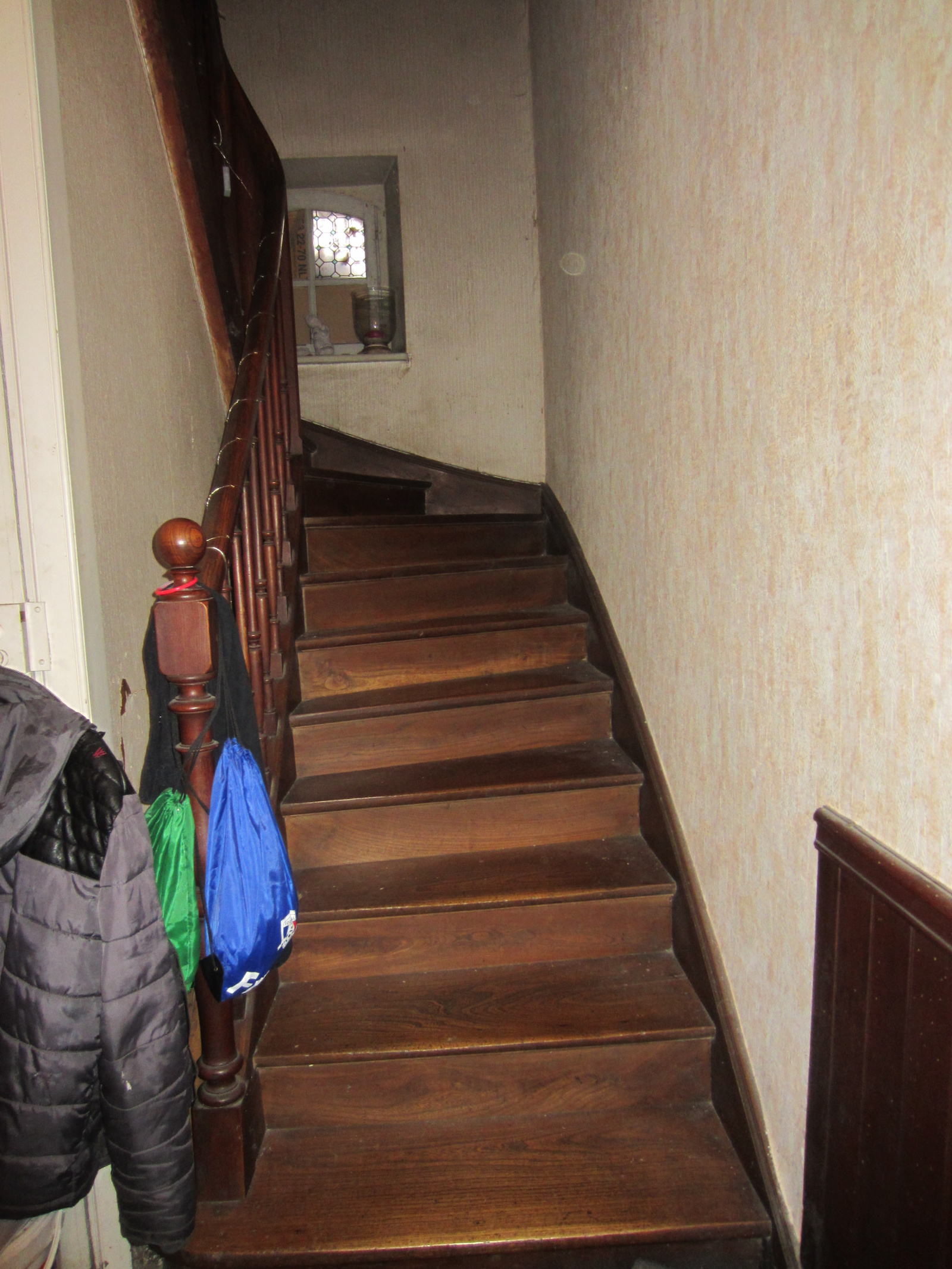 Les pièces de vie sont en rez-de-chaussée, avec une cuisine et la salle à manger d'un côté, le salon de l'autre, les WC et une salle d'eau. Un très bel escalier tournant en bois mène au premier étage, où un joli palier avec placards sur mesure dessert trois grandes chambres.