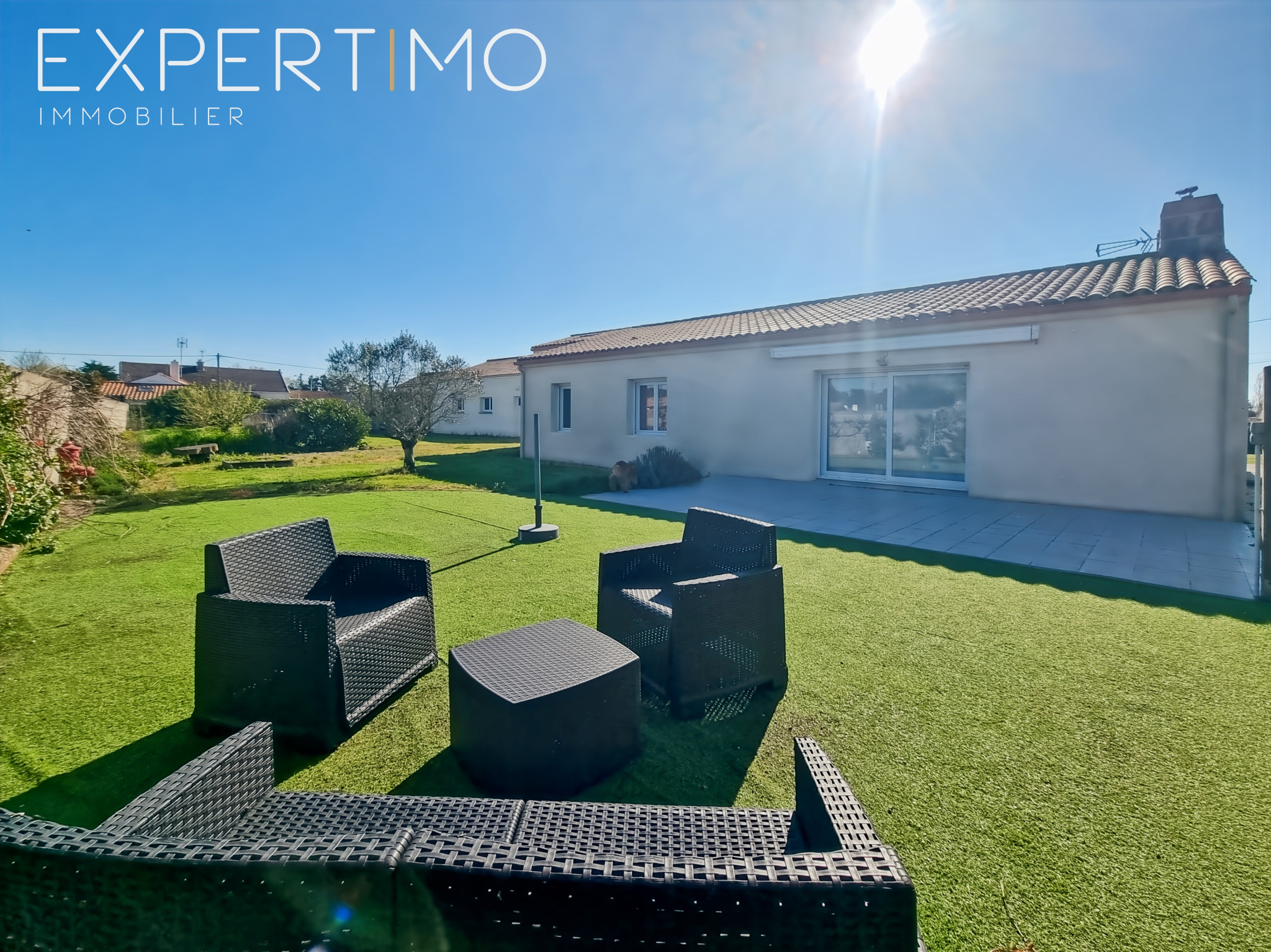 - Terrasse avec store banne, exposée pour un ensoleillement optimal