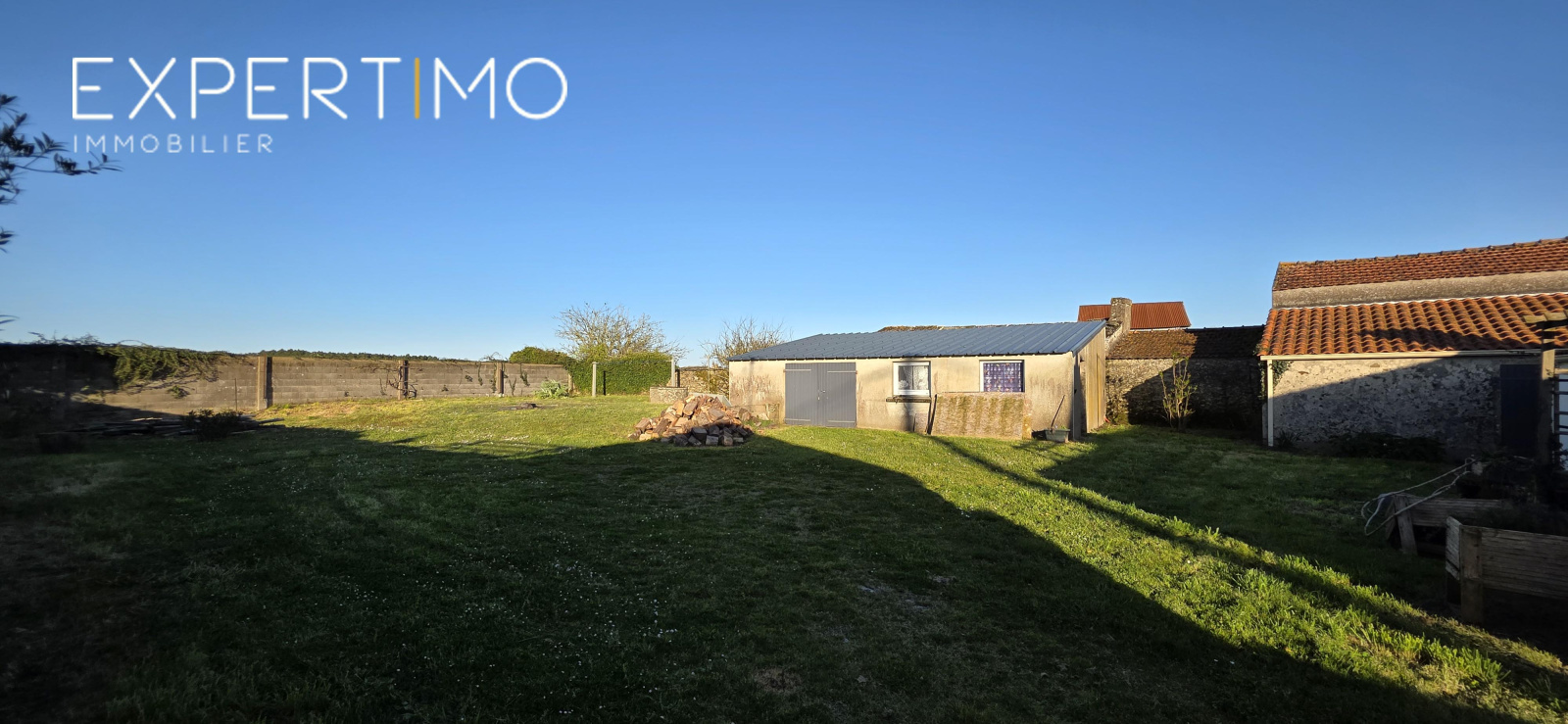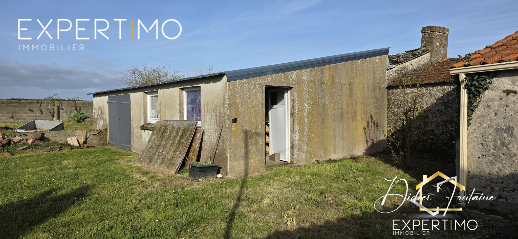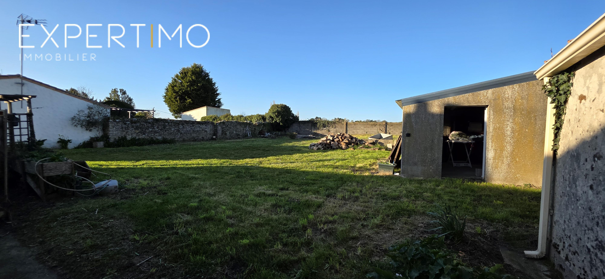 Garage et buanderies (env. 53 m²) sur terrain clos de 975 m² avec puits.