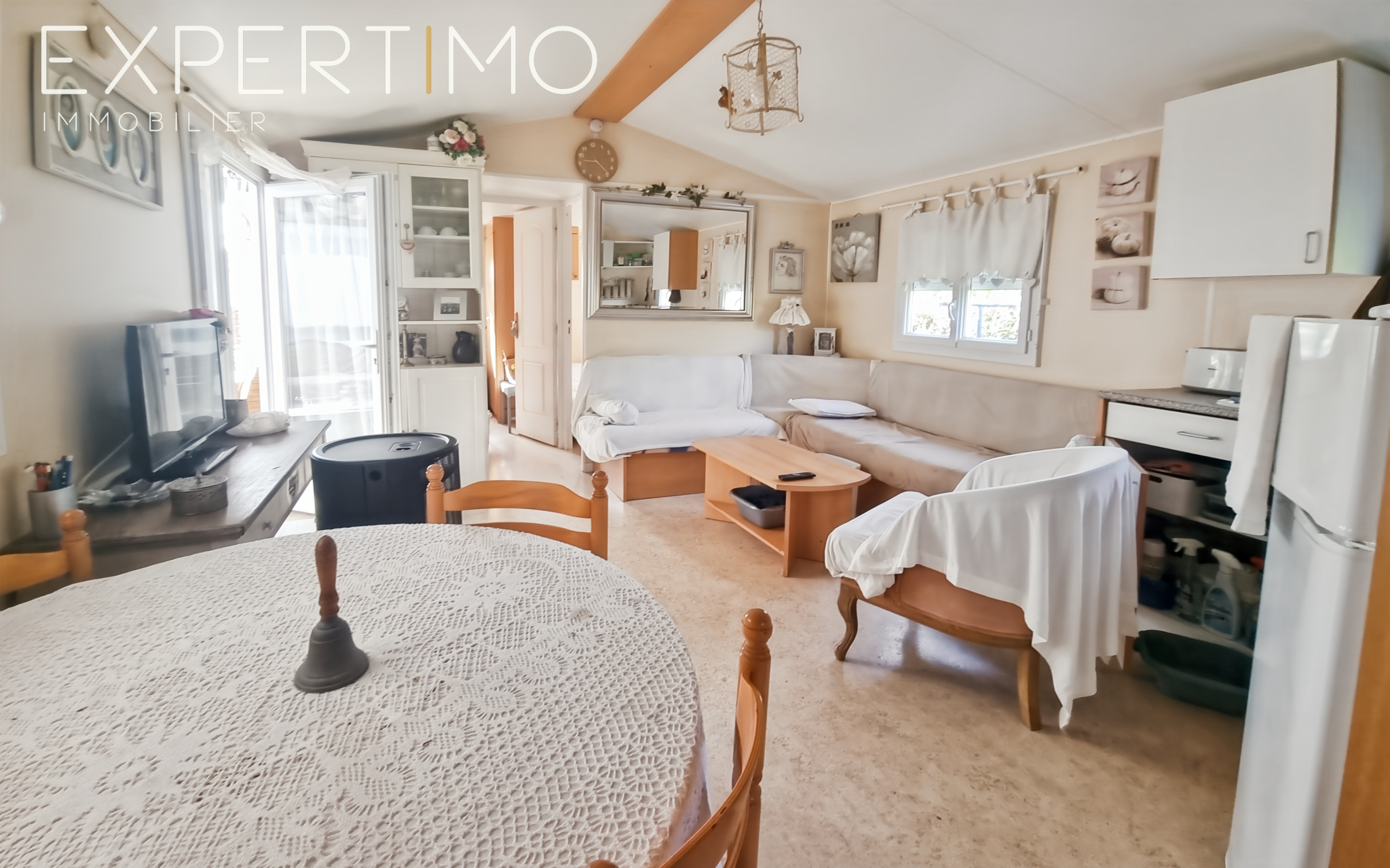 - Mobilhome tout équipé : 6 à 8 couchages, pièce de vie conviviale, cuisine aménagée