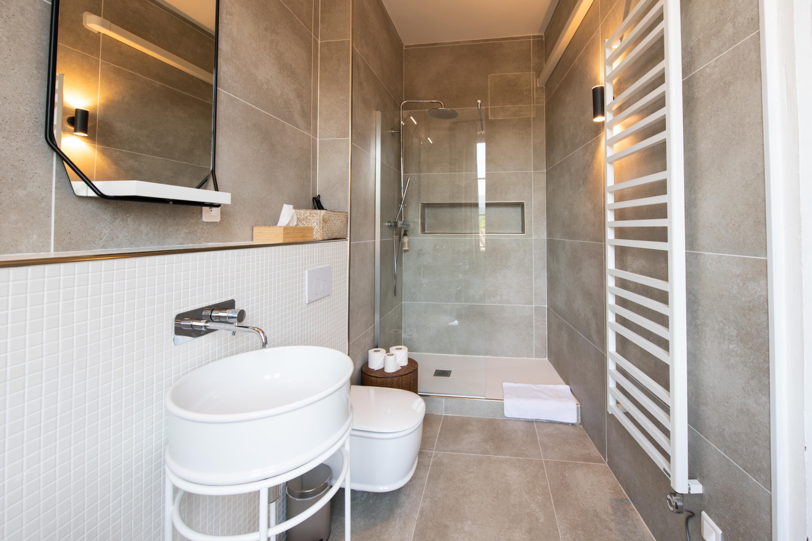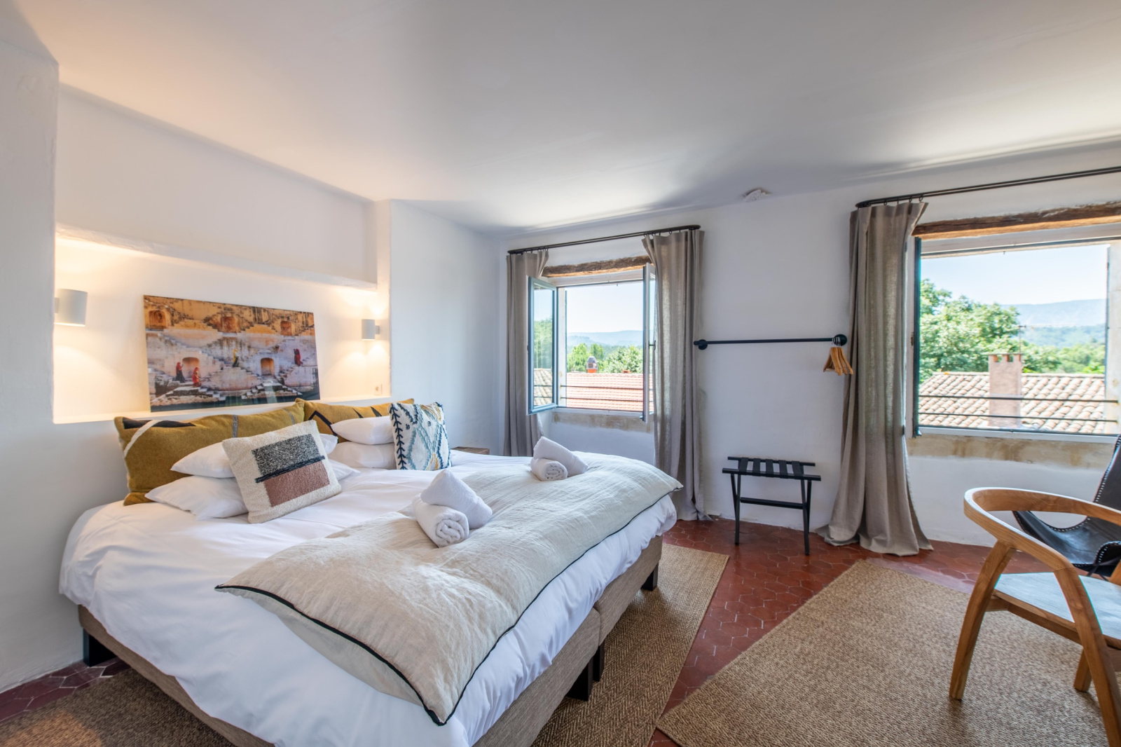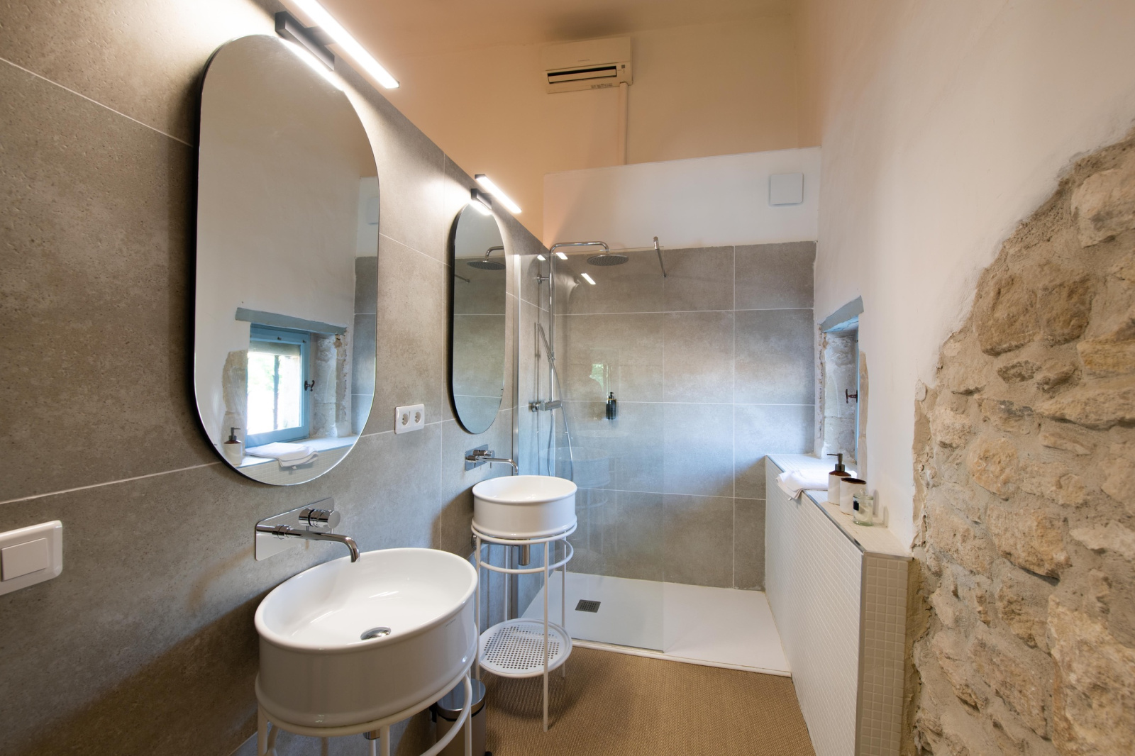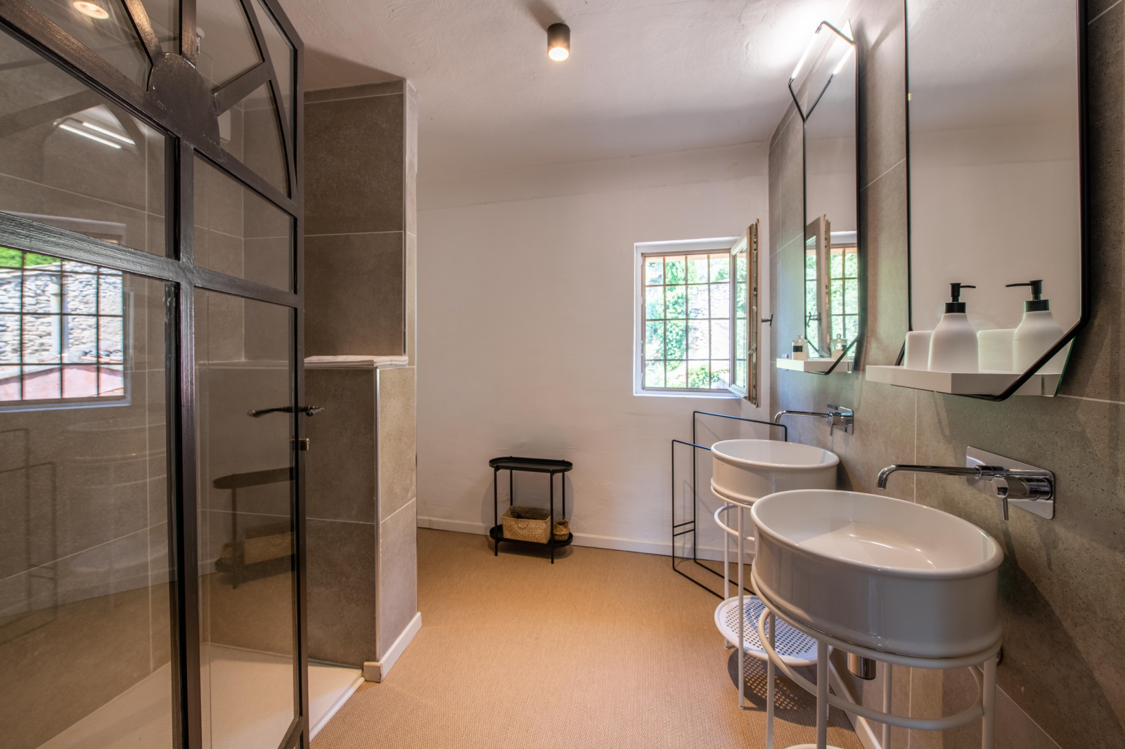 L'extérieur, en restanques, est agrémenté d'une piscine chauffée.