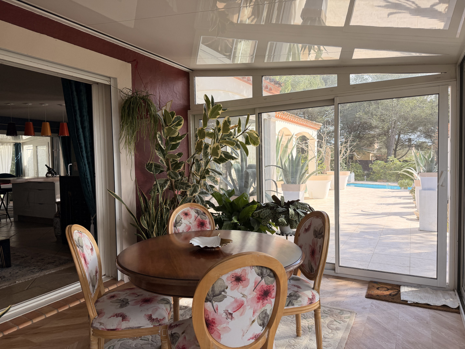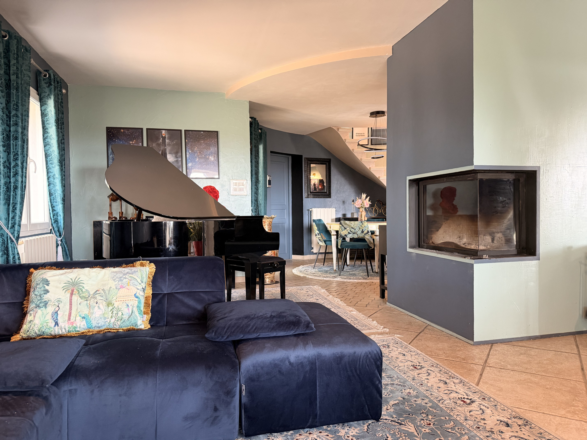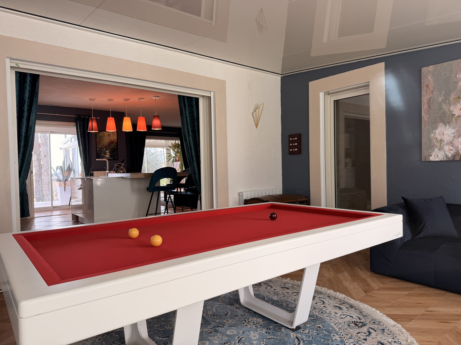 Située sur les hauteurs de Villemoustaussou, dans un cadre paisible et verdoyant, cette élégante villa d'architecte, construite en 2003, offre environ 243 m² de surface habitable de plain-pied. La propriété s'étend sur un magnifique terrain paysager de 3687 m², garantissant intimité et vues dégagées. La pièce de vie principale comprend une cuisine Cuisinella récente et entièrement équipée, ouverte sur un spacieux séjour de 70 m², idéal pour recevoir et profiter du jardin. La villa dispose de 9 pièces, dont : 2 suites parentales, 2 chambres supplémentaires partageant une salle de bains, un bureau, un jardin d'hiver, une salle de billard et une salle de cinéma. La propriété est en excellent état général et ne nécessite aucune rénovation. La façade extérieure a été entièrement refaite en 2023. Aménagements extérieurs : Le jardin paysager de 2 900 m² comprend : une piscine de 4 × 8 m, plusieurs terrasses, un espace barbecue et environ 1 000 m² de terrain constructible indépendant. Confort et prestations : chauffage central au fioul, climatisation réversible, cheminée, fenêtres coulissantes double vitrage aluminium, volets roulants électriques centralisés, internet fibre optique, tout-à -l’égout, classe énergétique : C. Garage, abri voiture et plusieurs places de parking complètent ce bien. Offrant espace, confort et intimité, cette propriété se situe à quelques minutes seulement de la célèbre Cité de Carcassonne, classée au patrimoine mondial de l’UNESCO. Visites possibles sur rendez-vous en semaine et le week-end.