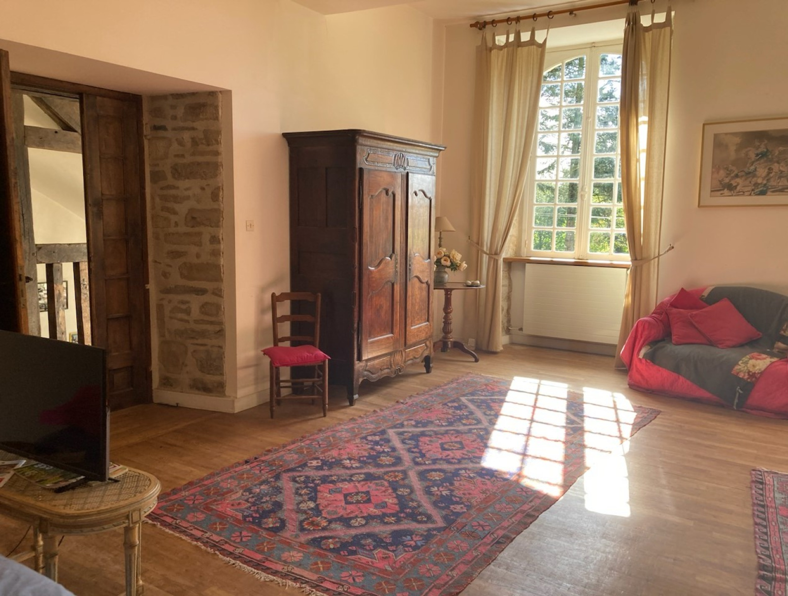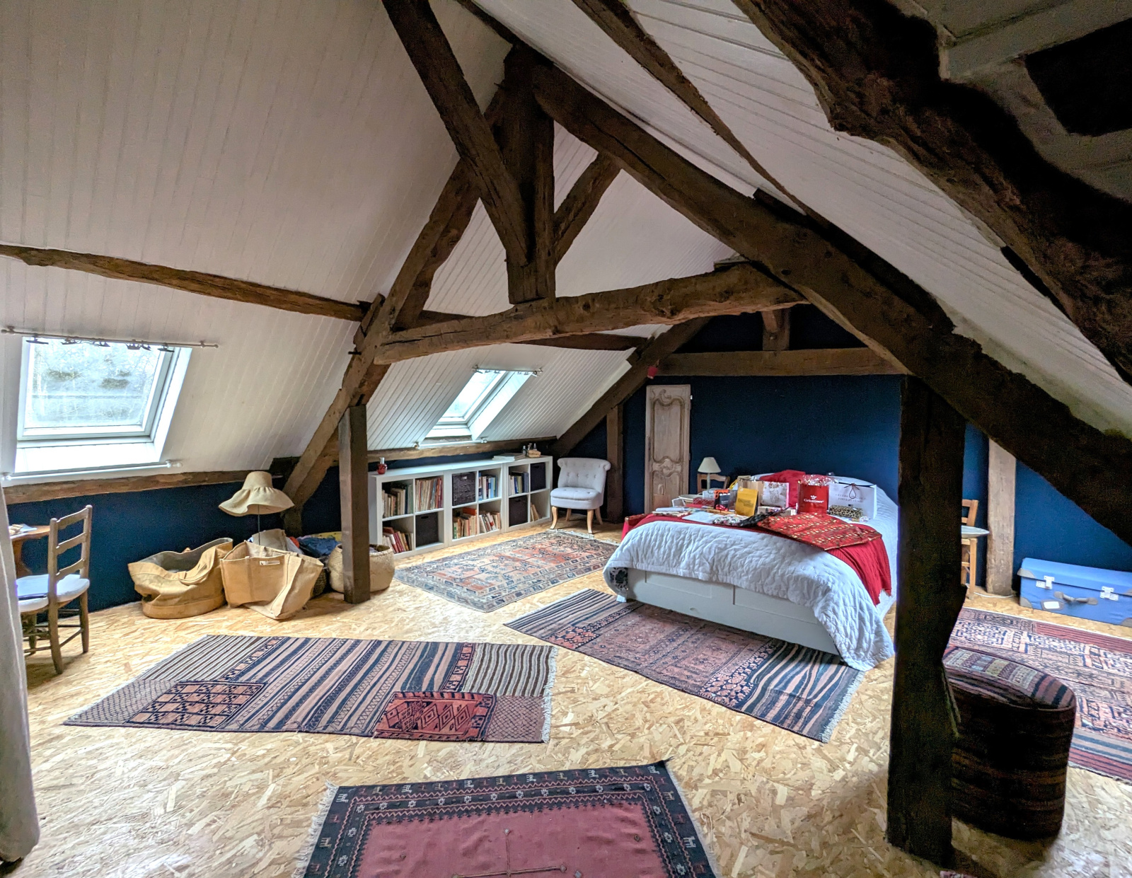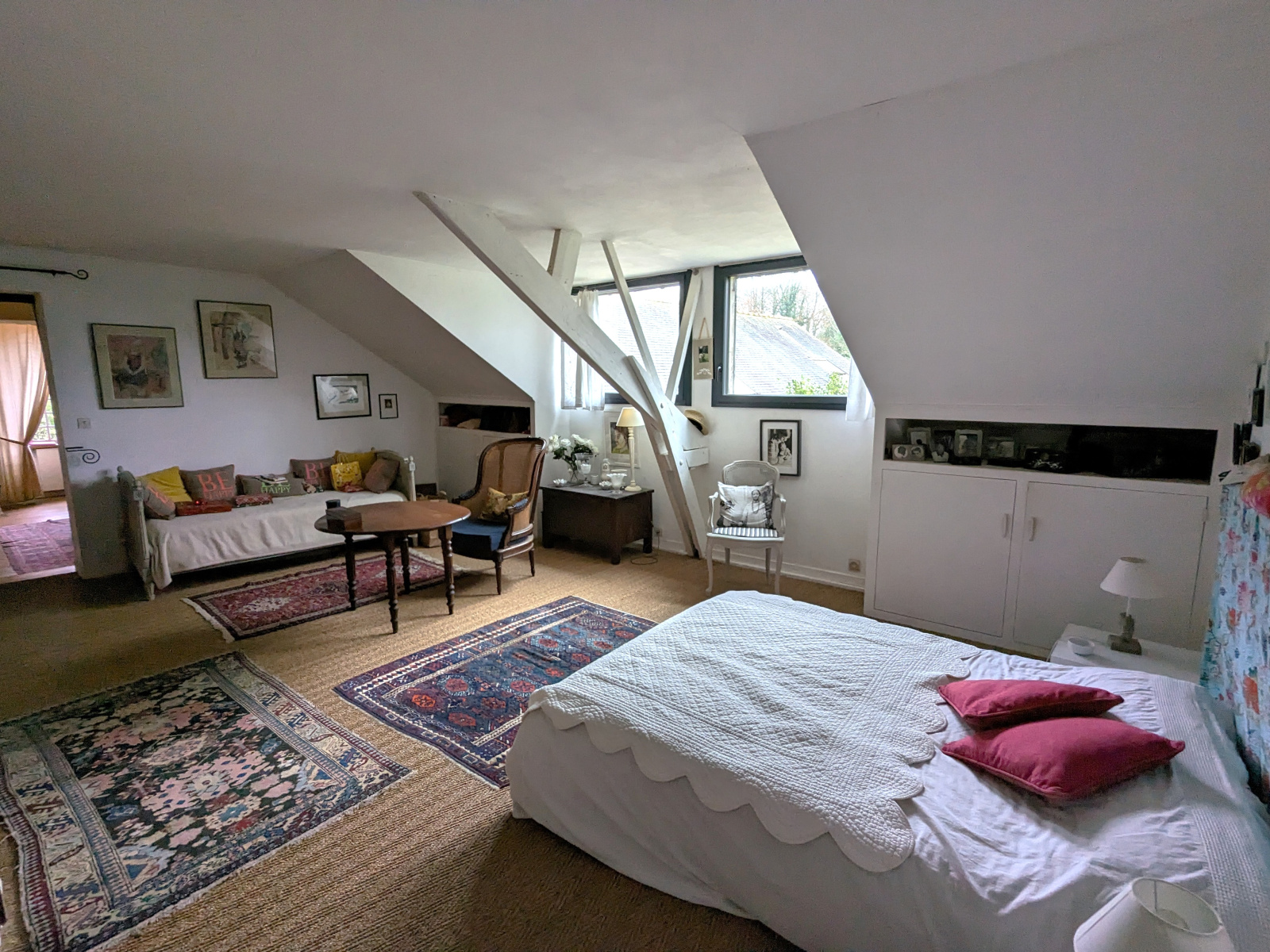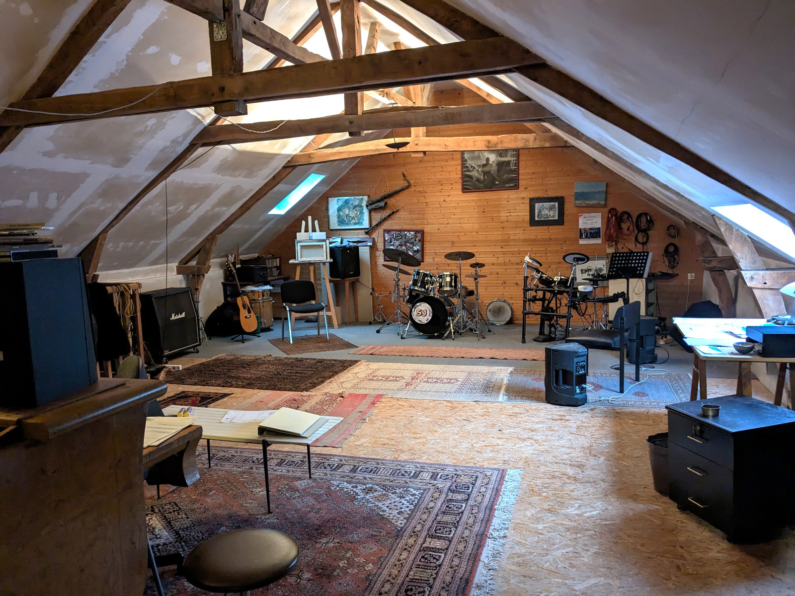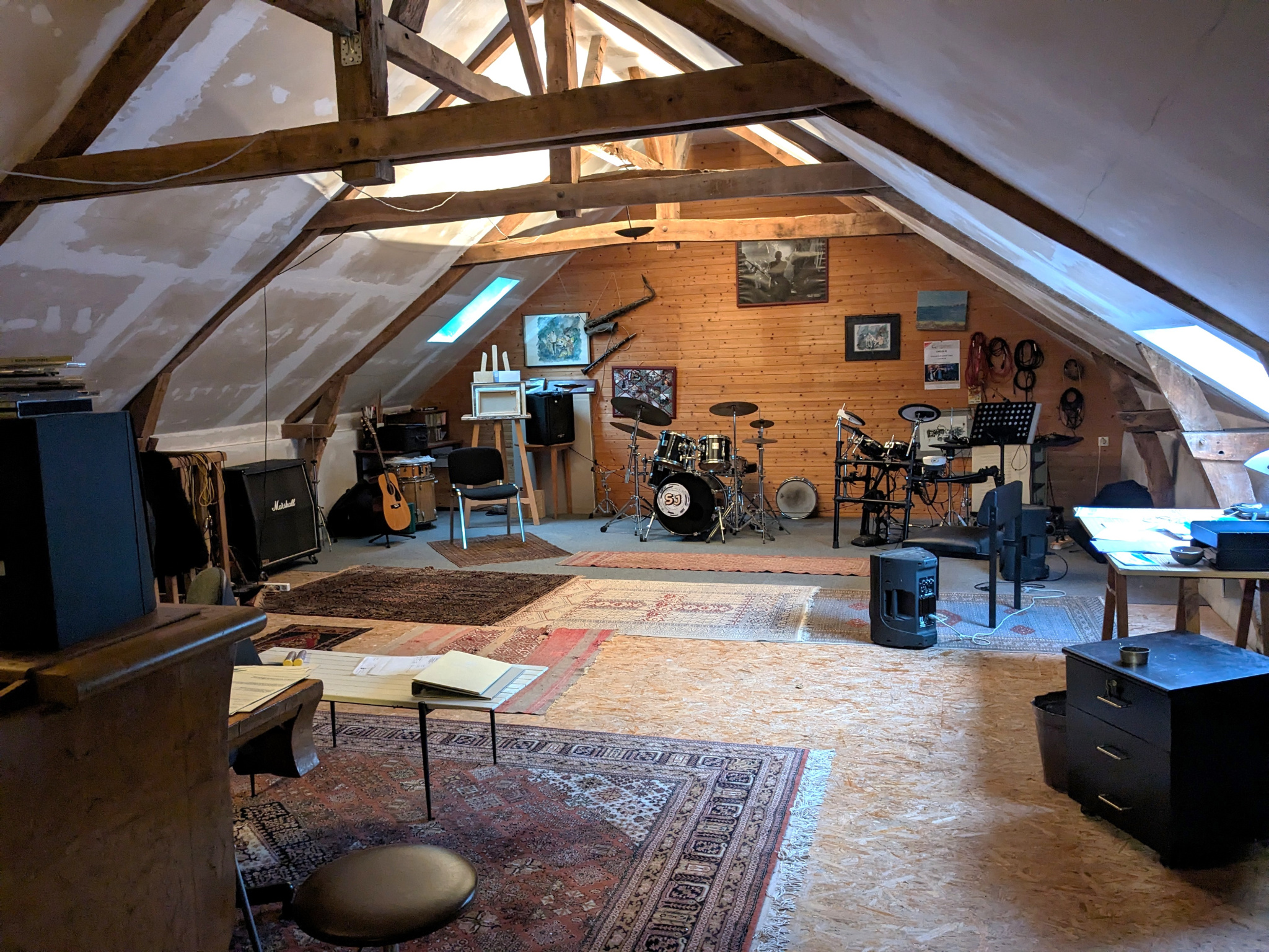 - une chambre d'env 50m2 habitable (env 70M2 au sol) accessible par un accès dérobé et avec poutres apparentes. Actuellement utilisée en salle de musique, elle reste à être aménagée mais offre un superbe potentiel en l'état ou en créant une chambre supplémentaire selon vos besoins.
