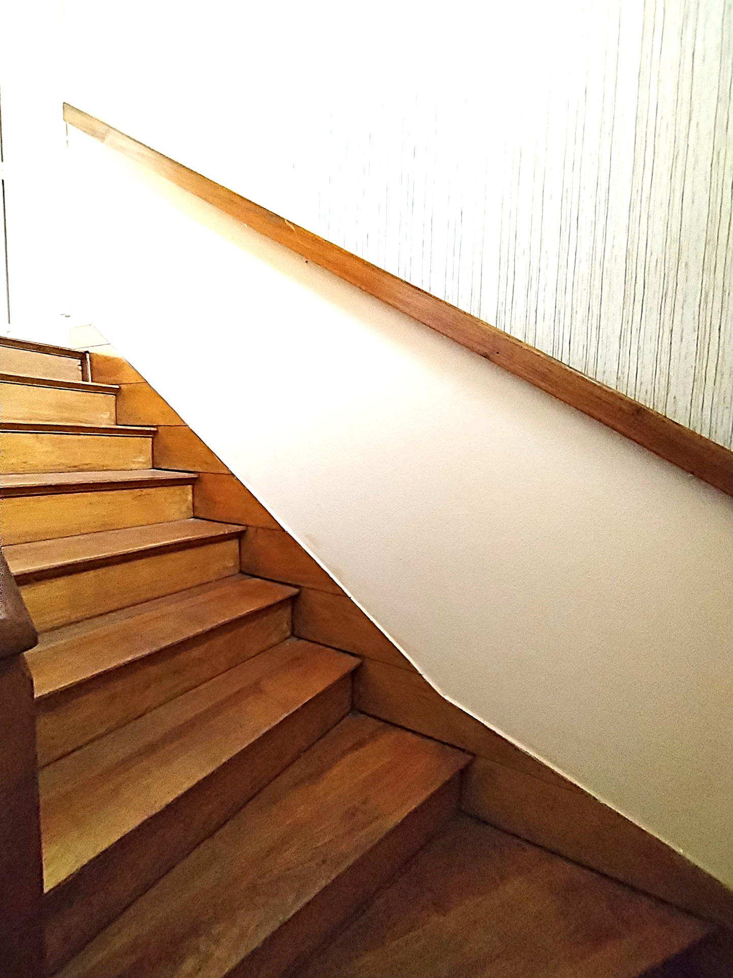 - L'escalier en bois massif ; sécurisant grâce à la rampe d'accès, au palier intermédiaire et au giron confortable.