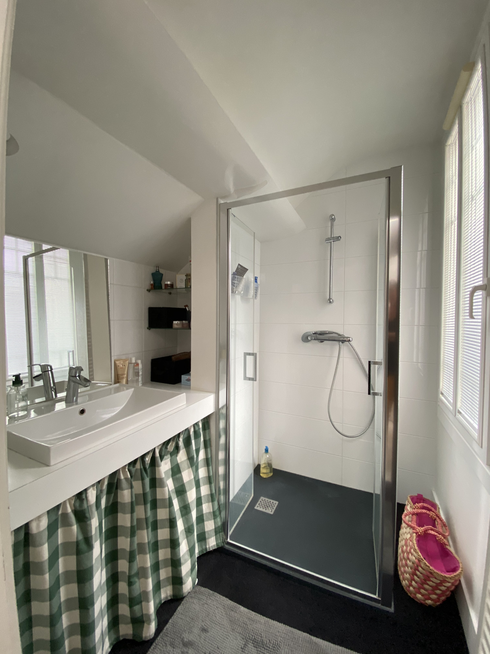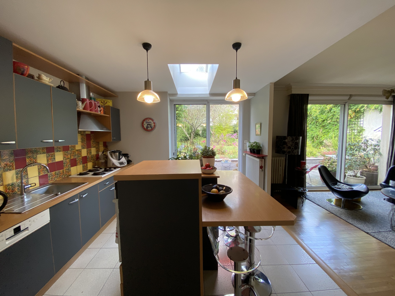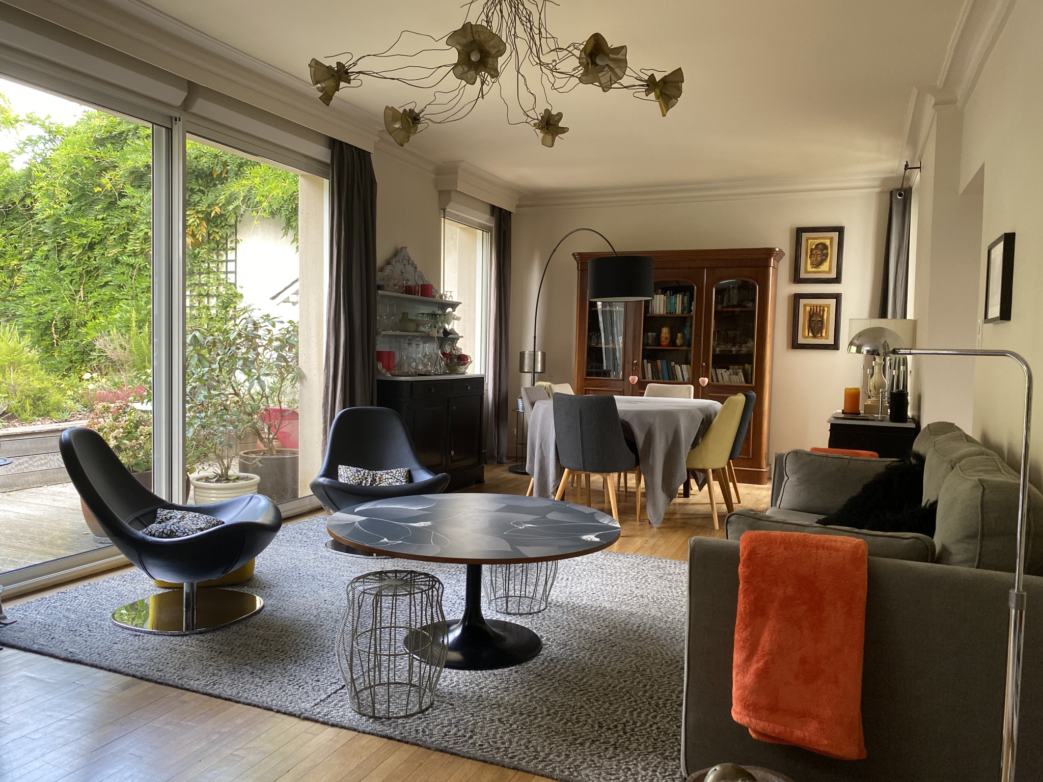 EXCLUSIVITE / Bourg - Très jolie maison des années 30 d'environ 130 m2 avec jardin clos et arboré, située dans quartier recherché, à proximité immédiate des commerces, des transports et des écoles. Elle se compose au rez-de-chaussée d'une entrée, bureau (chambre), salon avec cheminée, salon salle-à -manger et cuisine US aménagée-équipée avec ouvertures sur le jardin, buanderie et wc. Au premier étage, trois chambres avec placards-dressing et salle d'eau privative dans chaque chambre.