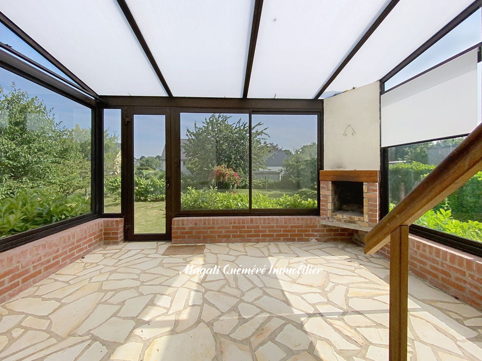 Découvrons la ensemble : le couloir de l'entrée dessert un salon séjour de 28 m² environ, une cusine équipée et aménagée de 13 m², semi-ouverte sur le séjour et avec accès à la veranda de 14m² avec sa cheminée barbecue, des WC. Dans le prolongement du couloir en L, accès à la salle d'eau avec douche italienne et aux 3 chambres sur parquet équipées de grands placards.