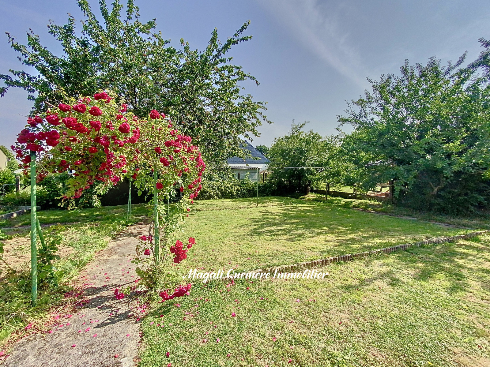 Le jardin clôturé est un véritable havre de paix verdoyant avec sa superficie de 830 m² et agrémenté de nombreux arbres fruitiers.