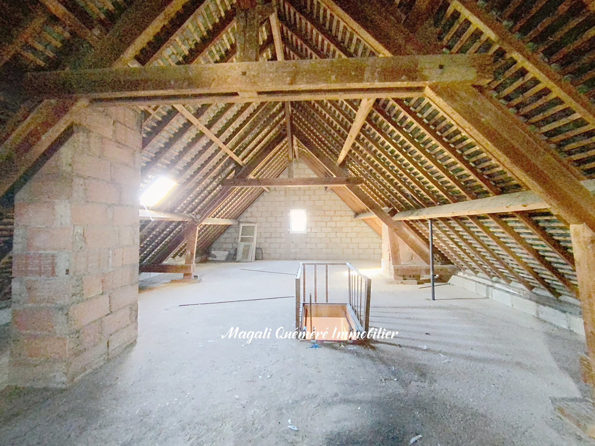 Combles offrant environ 73 m² au sol, soit environ 45 m² habitables après aménagement (plancher béton, 3 ouvertures existantes).