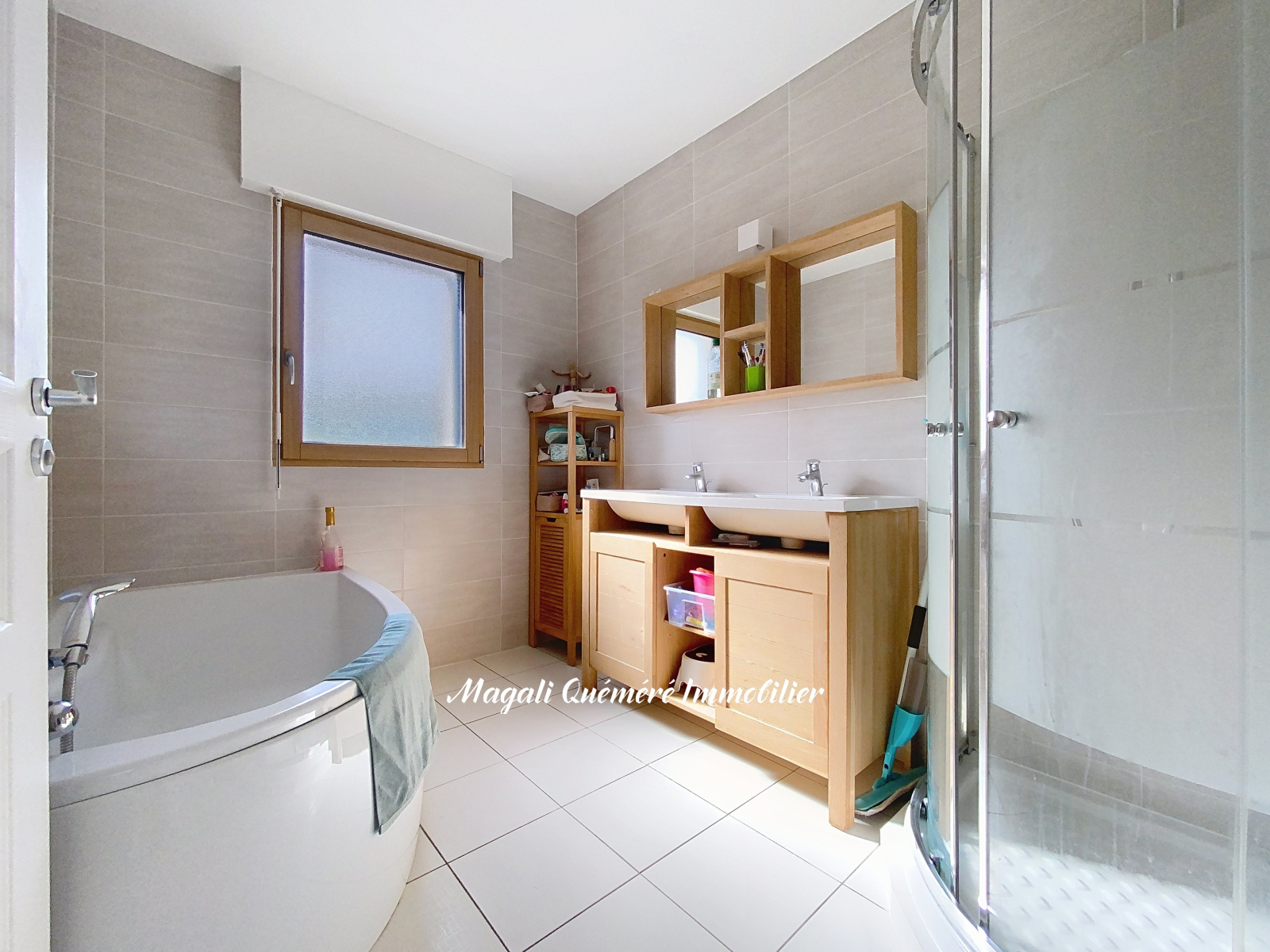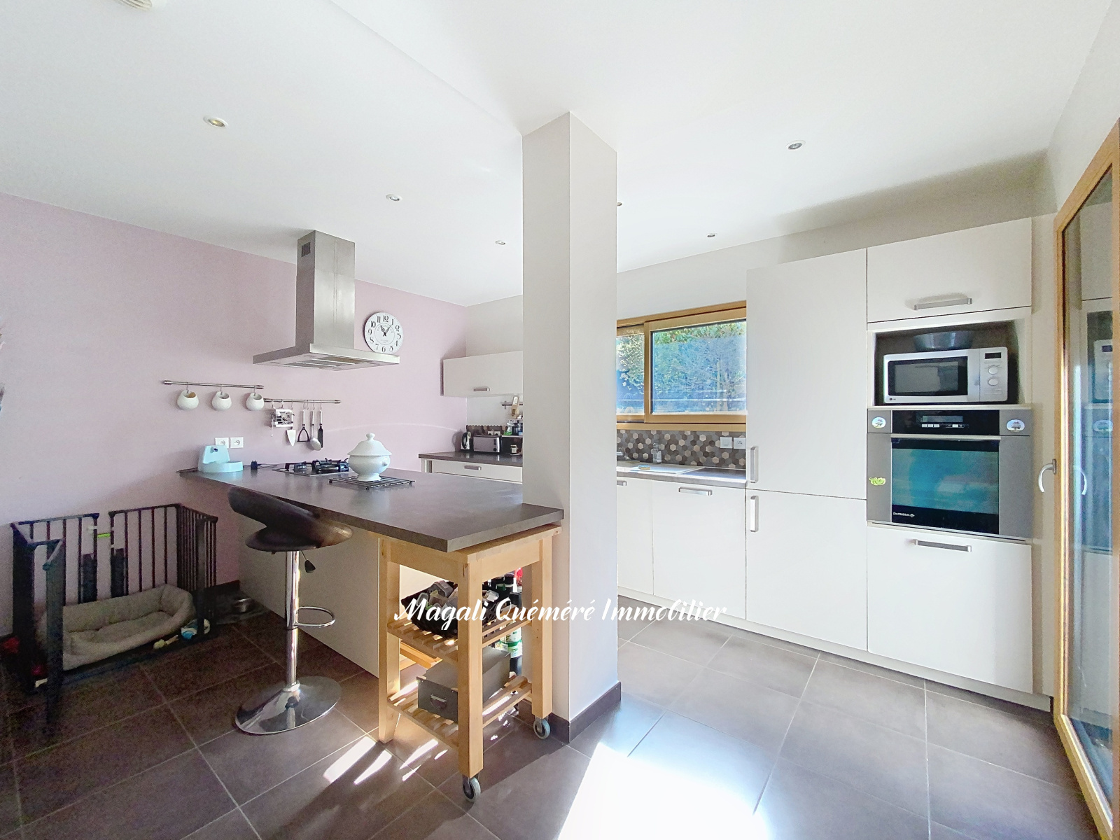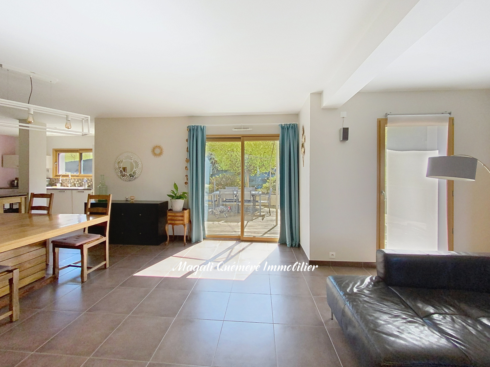 Jardin clos et paysager de 617 m². Décoration soignée et très actuelle, menuiseries mixte bois/alu. Aspiration centralisée, conduit de cheminée déjà tubé, de nombreux placards.