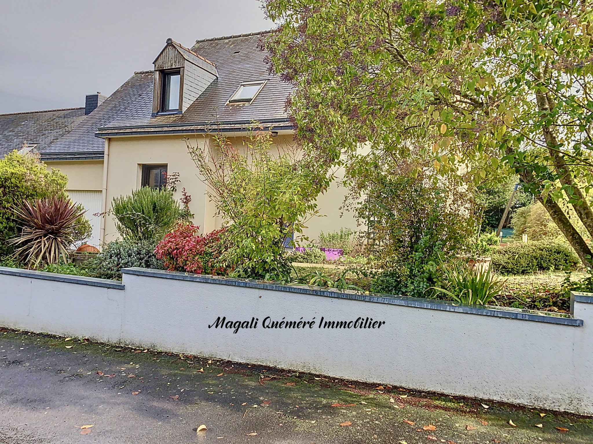Une terrasse de plus de 20 m², carrelée et couverte prolonge la pièce de vie et permet de profiter du jardin arboré à l'abri des regards. L'extérieur est entièrement carrelé ou dallé.