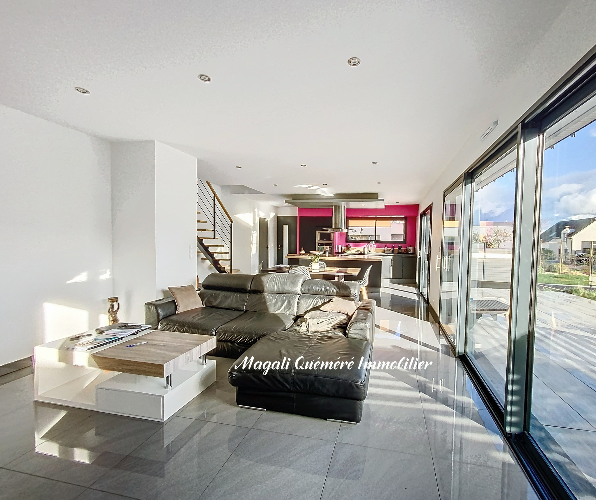 Maison de 2017 - 6p. non mitoyenne - 129 m² hab. - 500 m² de terrain Venez découvrir dans un quartier calme cette maison contemporaine et lumineuse au design moderne. Au RDC : espace à vivre de 50 m² comprenant une cuisine aménagée et équipée avec un ilot central, un placard, un salon séjour, de grandes baies vitrées exposées sud avec accès direct sur une terrasse carrelée de 45 m² environ, une chambre avec placard de 12.5 m², une salle d'eau, des WC avec lave-mains, une buanderie. A l'étage : 3 chambres avec placards, une mezzanine de 13 m² envion, une salle de bains avec douche, des WC. L'intégralité de la surface est habitable. Un préau et un atelier complétent le tout pour une surface de 16 m². Jardin arboré de 504 m². Chaudière gaz à condensation, chauffe-eau thermodynamique, chauffage au sol pour le RDC et radiateurs à l'étage. Emplacement idéal pour une famille : Ecole, collège, et lycée à 1 km, commerces à 1.3 km, Gare SNCF à 2kms et bus à 800 m. MONTFORT-SUR-MEU est une cité de caractère, au pied de sa forêt, qui compte près de 7.000 habitants et propose un panel complet de commerces, services, activités, cinéma, piscine, écoles, collèges et lycée. La gare SNCF de Montfort relie la gare de Rennes en moins de 20 min. Les informations sur les risques naturels, miniers ou technologiques auxquels est exposé le bien sont consultables sur le site www.georisques.gouv.fr. Cette maison lumineuse correspond à vos attentes ? Contactez moi pour une visite !
