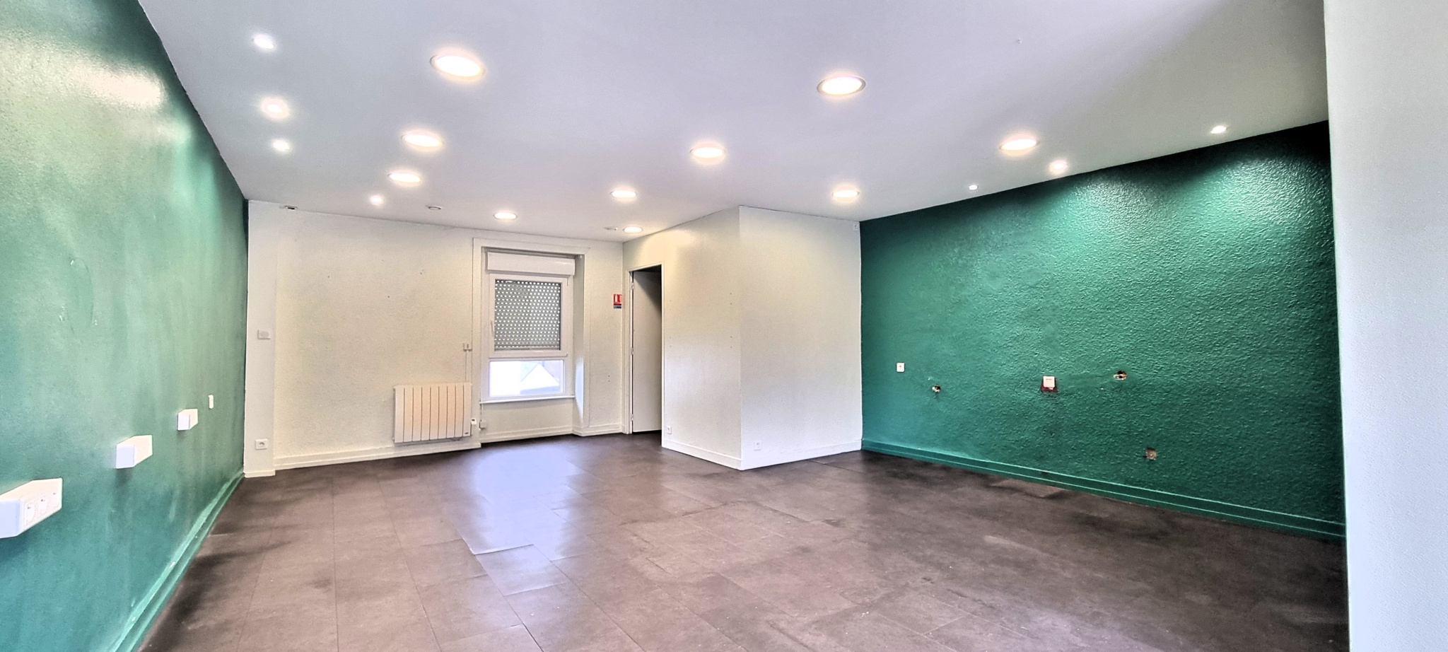 - Au rez-de-chaussée, d’un local commercial d’environ 45 m² avec une grande cave en sous-sol, anciennement exploité en salon de coiffure, offrant une belle visibilité et de multiples possibilités d’activités.