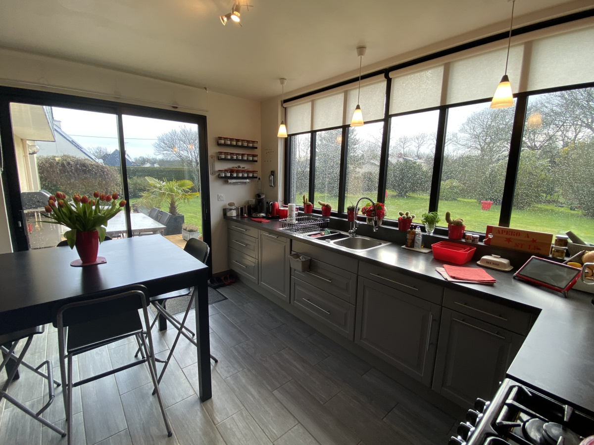 EXCLUSIVITE - Proche Golf CICE BLOSSAC de BRUZ Maison contemporaine lumineuse et en très bon état. Au calme, sans vis-à -vis, sur un terrain de 1522 m² , la maison est composée d'un séjour avec cheminée et insert, un grand salon sur parquet exposé SUD, cuisine indépendante aménagée-équipée, 1 buanderie, 1 chambre et salle d'eau au rez de chaussée. A l'étage 3 chambres, salle de bains, WC. Grand garage en sous-sol avec cave. Terrasse exposée SUD et OUEST . A 5 mn du quartier du Vert Buisson, et seulement 15 mn de Rennes. DPE : E -