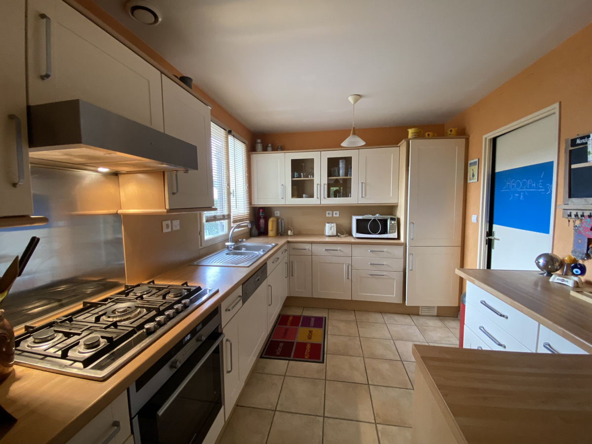 Golf Cicé Blossac - Grande maison familiale avec jardin exposé SUD. Séjour-salon avec cheminée, cuisine aménagée-équipée, 5 chambres (dont deux en RDC), 2 salles de bains et 1 salle d'eau, grande salle de jeux et bureau. Nombreux rangements. Grand garage et buanderie. Jardin d'environ 610 m² au calme. Prévoir travaux de rafraichissement. Quartier résidentiel à seulement 10 mn de Rennes. DPE : C - Honoraires inclus charge acquéreur: 3.90 % TTC (Prix 480 000 € hors honoraires).