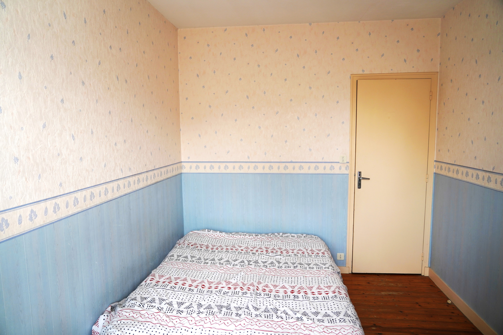 A l'étage, 2 chambres, une salle de bains et un grand grenier aménageable. Au deuxième niveau, grenier.