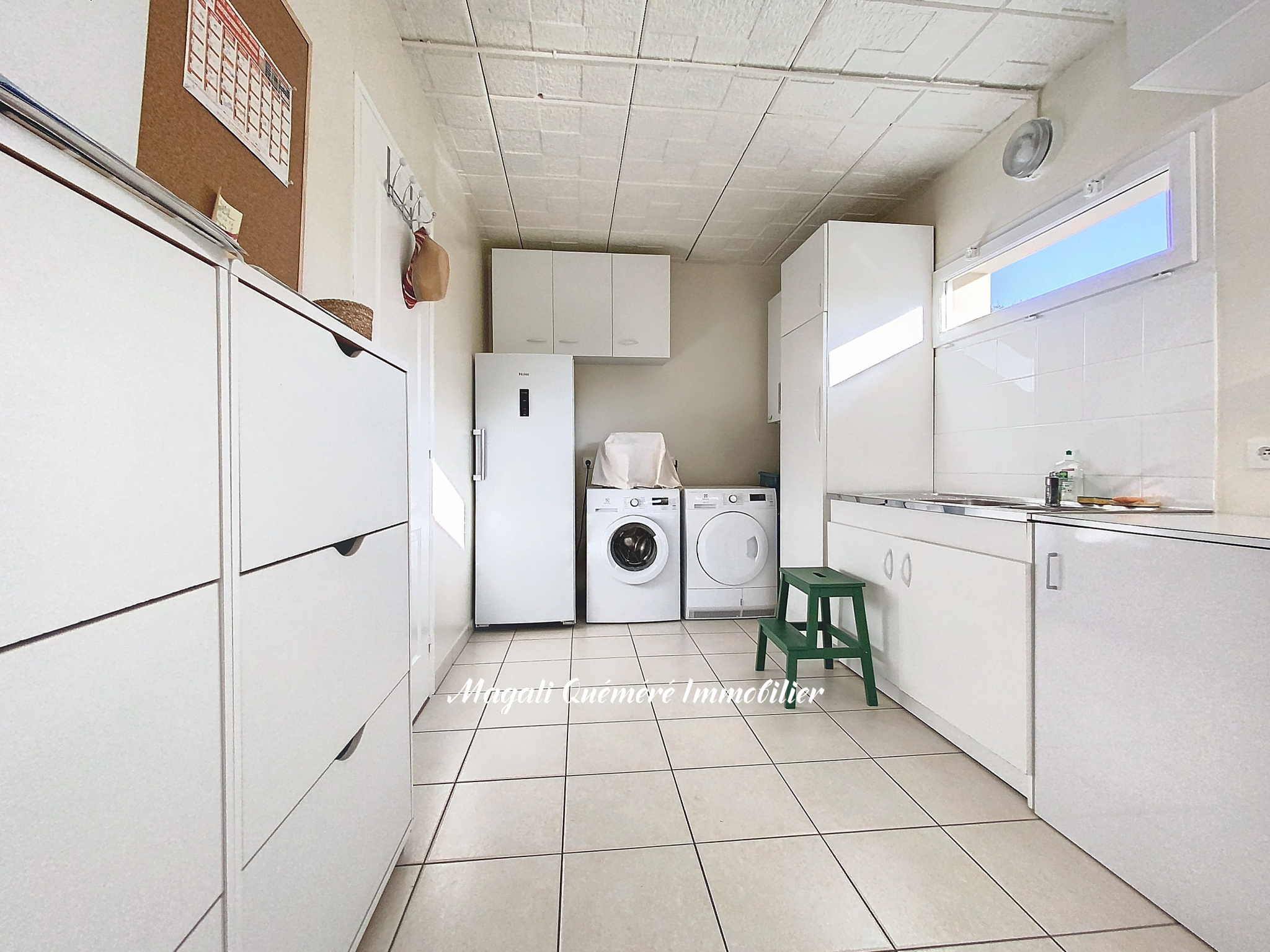 Au RDC : entrée avec placard, amenant sur le salon séjour, avec cheminée. Cuisine ouverte aménagée et équipée , ouverte sur le salon séjour. La pièce de vie, d'une surface de m² environ, est exposée SUD / EST. Cellier buanderie avec meubles sur mesures, chambre de 12 m², salle d'eau, WC avec lave main, garage de 29 m² avec cave.
