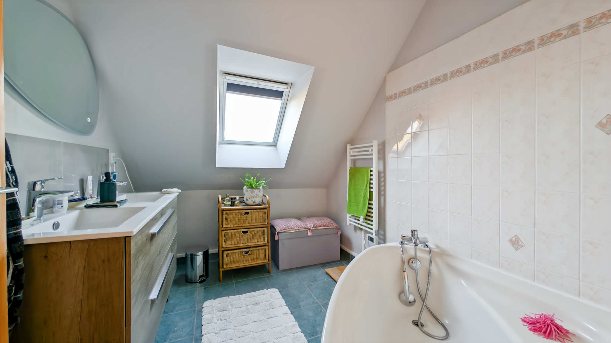 À l’étage, l’espace nuit se compose de 4 chambres, d’une salle de bains et d’un WC séparé, idéal pour une vie de famille confortable.