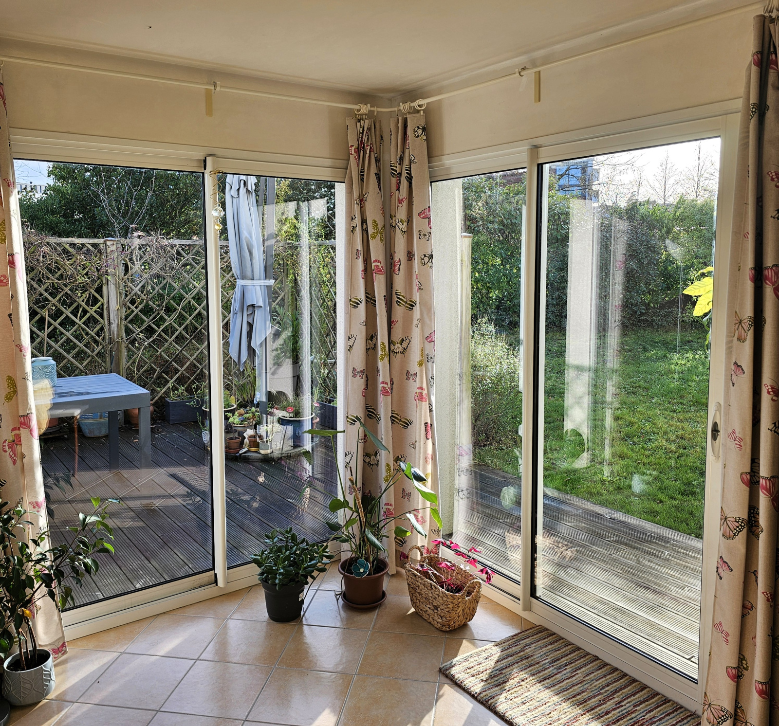 La partie séjour s’ouvre sur une terrasse et un jardin exposé ouest et sans vis-à -vis.