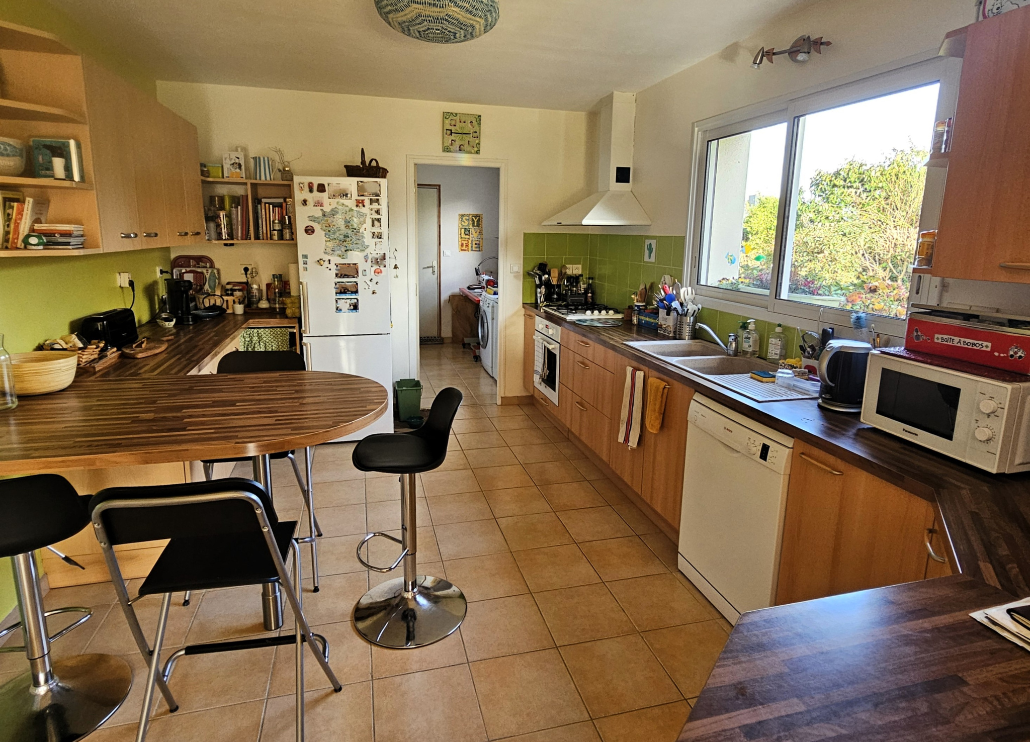La grande cuisine, entièrement aménagée et équipée, offre un coin repas idéal pour les petits déjeuner et les repas quotidiens. Elle dispose en plus d’une arrière-cuisine de plus de 8 m2.