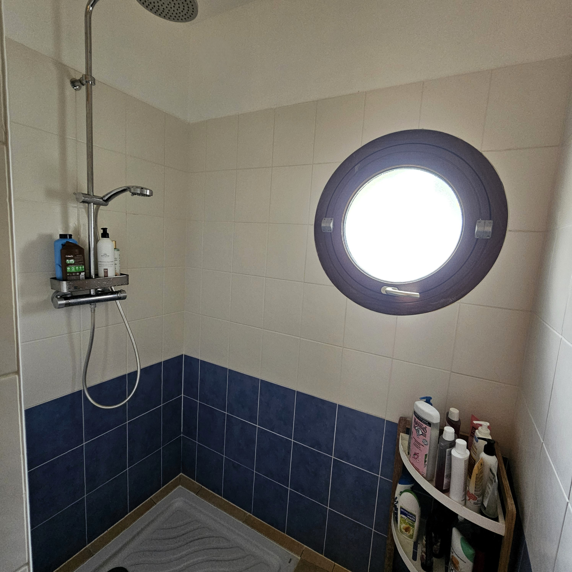 Le rez-de-chaussée comprend également une partie nuit avec la chambre parentale de plus de 13 m2, une salle d'eau attenante disposant d’une douche type italienne avec un hublot offrant une ventilation et une lumière naturelle. Enfin vous disposez aussi d’un WC indépendant.