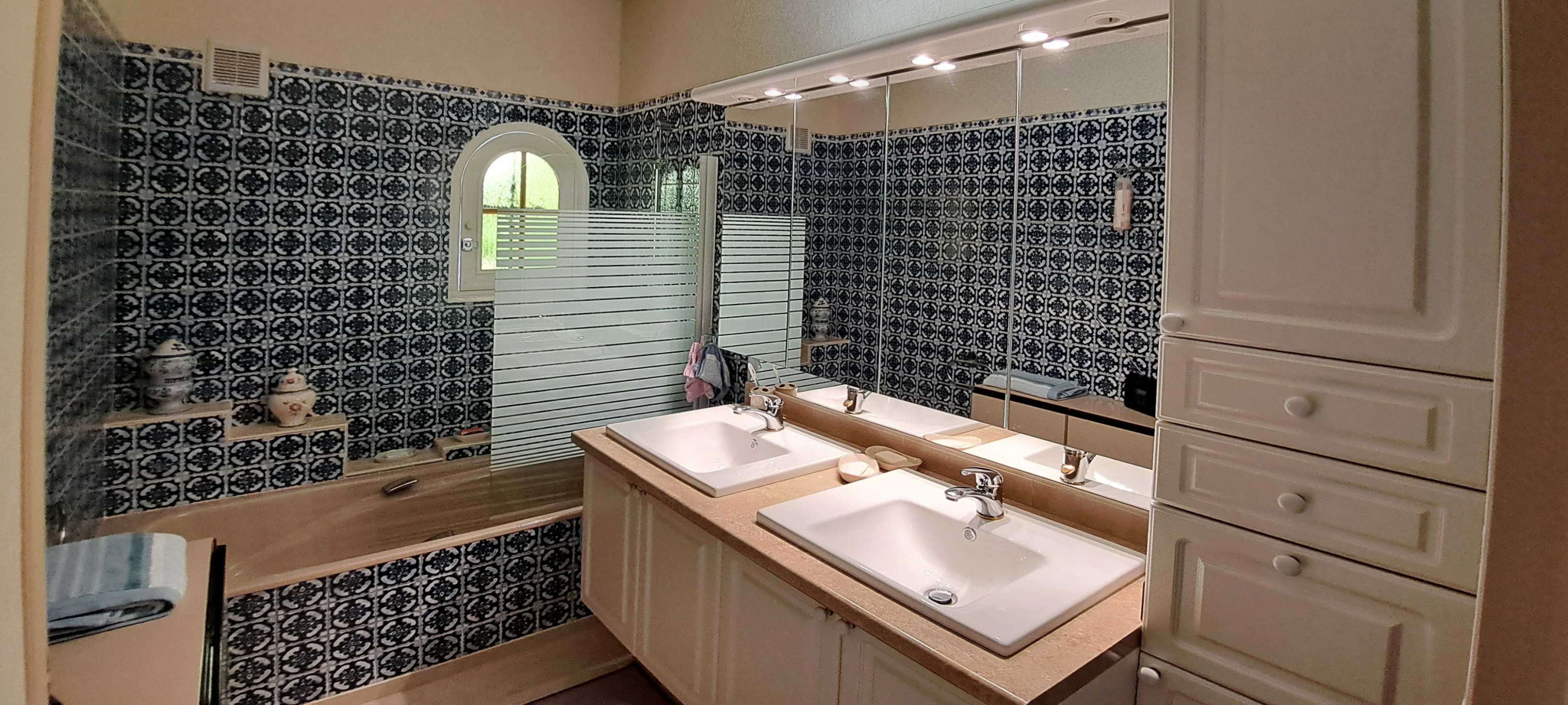 La toiture en roseaux, contrôlée et entretenue en 2025, les menuiseries alu-bois et PVC, les volets radiocommandés, le portail motorisé avec visiophone et les équipements connectés font de cette maison un lieu à la fois authentique et résolument moderne.