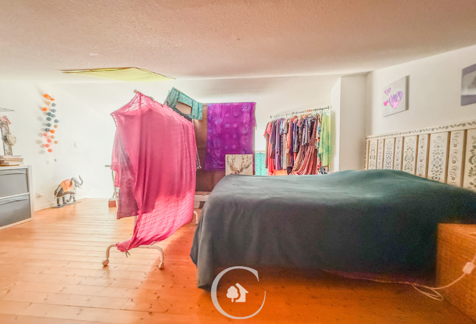 Une mezzanine abrite une deuxième chambre avec espace bureau et développant 30m2 au sol.