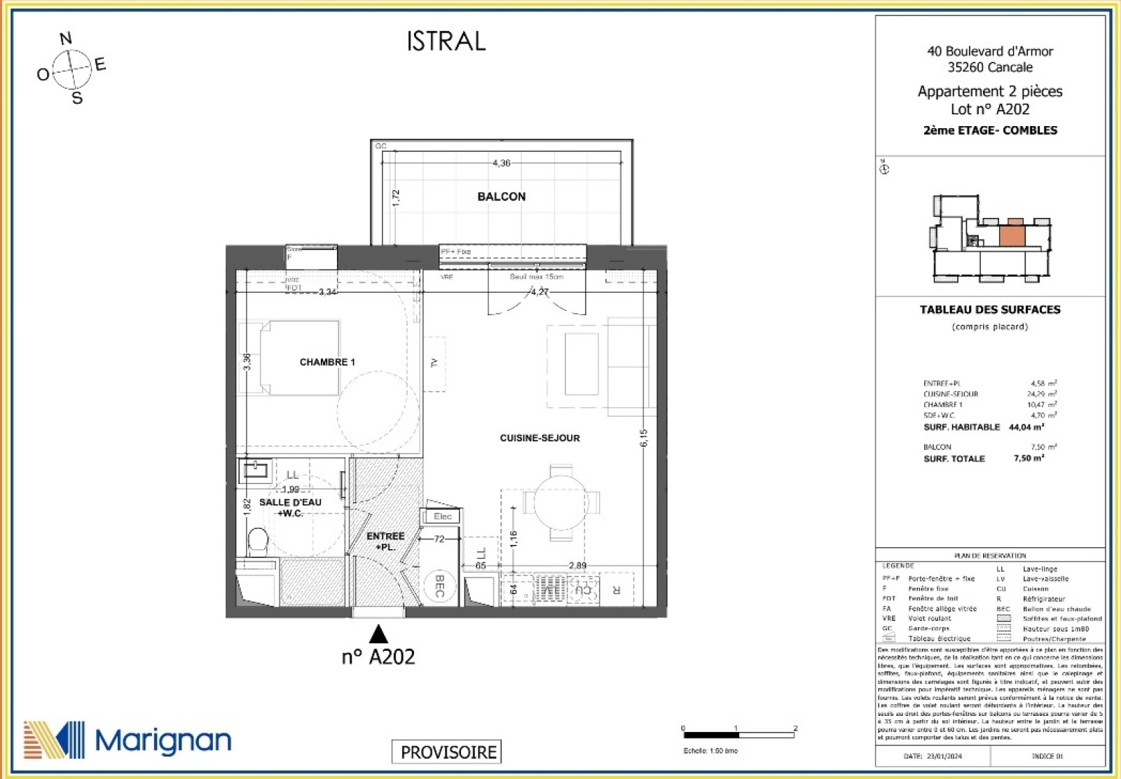 Il ne reste plus que 7 appartements à disposition (2, 3 ou 4 pièces) ; la gamme de prix allant de 239 700 € (44 m2) à 440 400 € (pour 87,75 m2). Quelle que soit la grandeur, l'équipement est identique : fenêtres PVC double vitrage, volets roulants électriques, chauffage électrique, sèche-serviettes chauffant, interphone ; l'ensemble respectant la règlementation environnementale 2020. La livraison est prévue dans le courant du 4ème trimestre 2025.