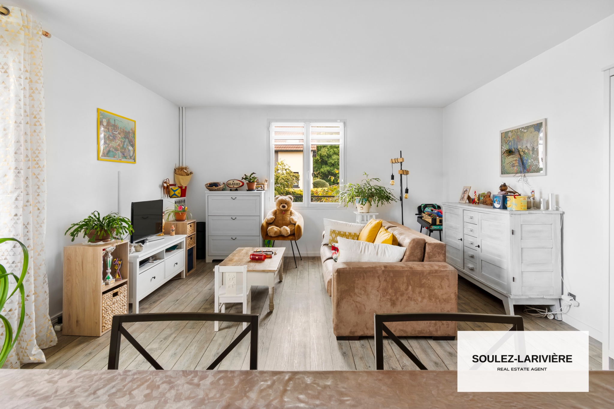 Un appartement en rez-de-chaussée surelevée de 4 pièces principales d'une surface de 78m2 qui se compose : d'une entrée avec dégagement et dressing, d'un double séjour de 28m2 avec double exposition Sud et Ouest donnant sur le jardin de la copropriété, d'une cuisine indépendante équipée et aménagée, de trois chambres, d'un salle d'eau avec douche et vasque et d'un WC d'invité.