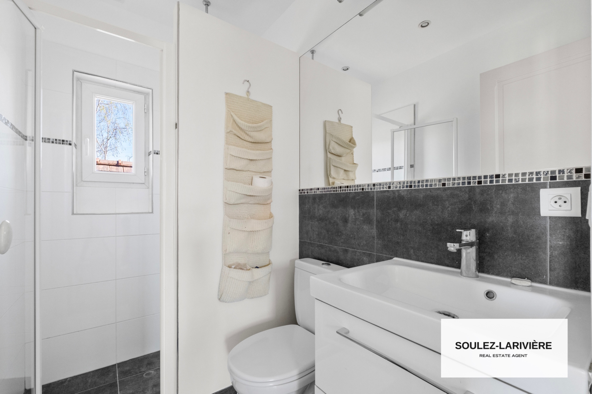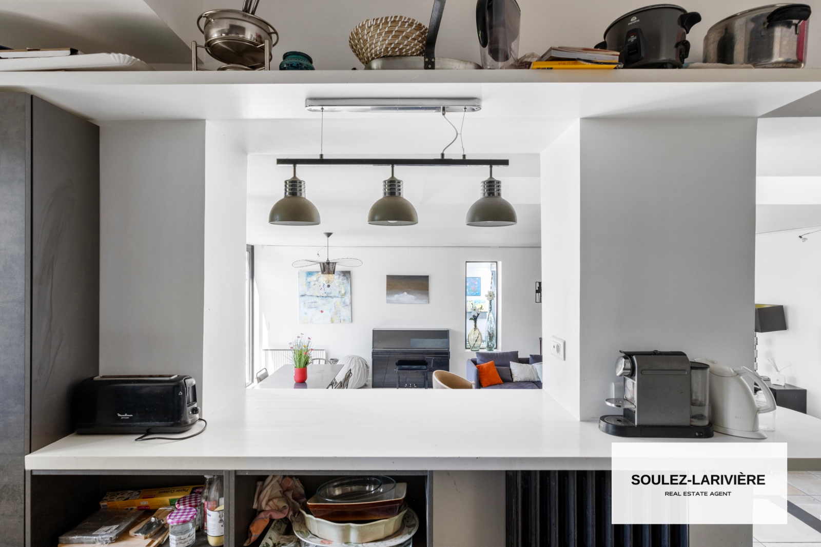 Elle offre actuellement 135 m² habitables comprenant une suite parentale de 25 m2 avec une salle de bain avec double vasque (baignoire et douche). Un WC d'invitée se trouve également au même niveau.