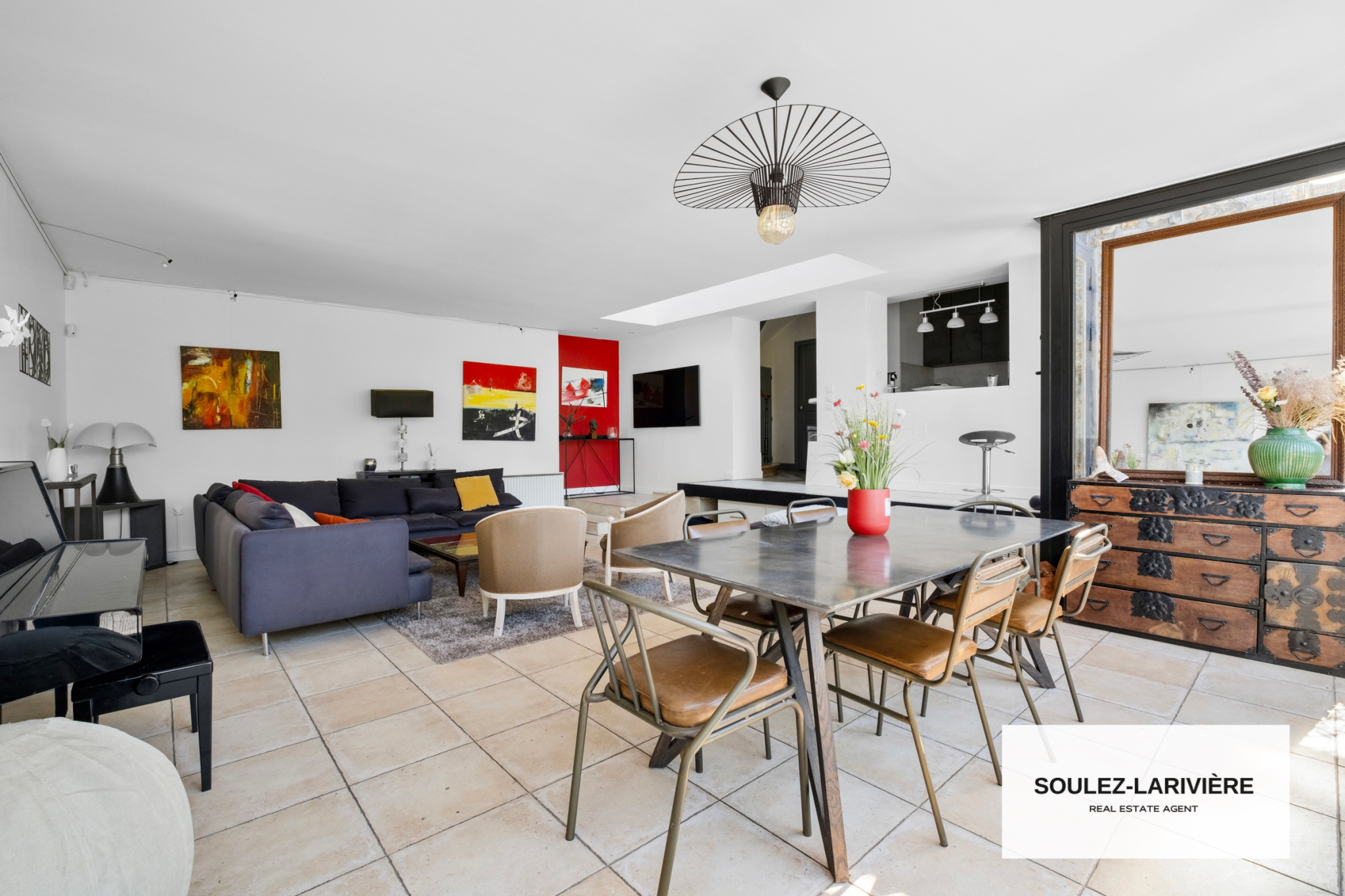 Un atelier d'artiste de près de 30m2 avec une hauteur de plus de 3,50m (non prise en compte dans la surface des 135m2) peut être aménagée et isolé pour faire office de pièce supplémentaire. (possibilité d'intégrer cette pièce au séjour via un IPN)