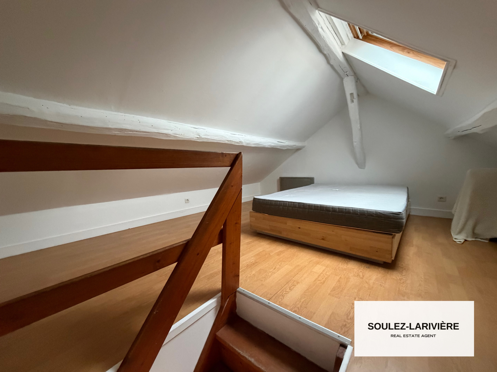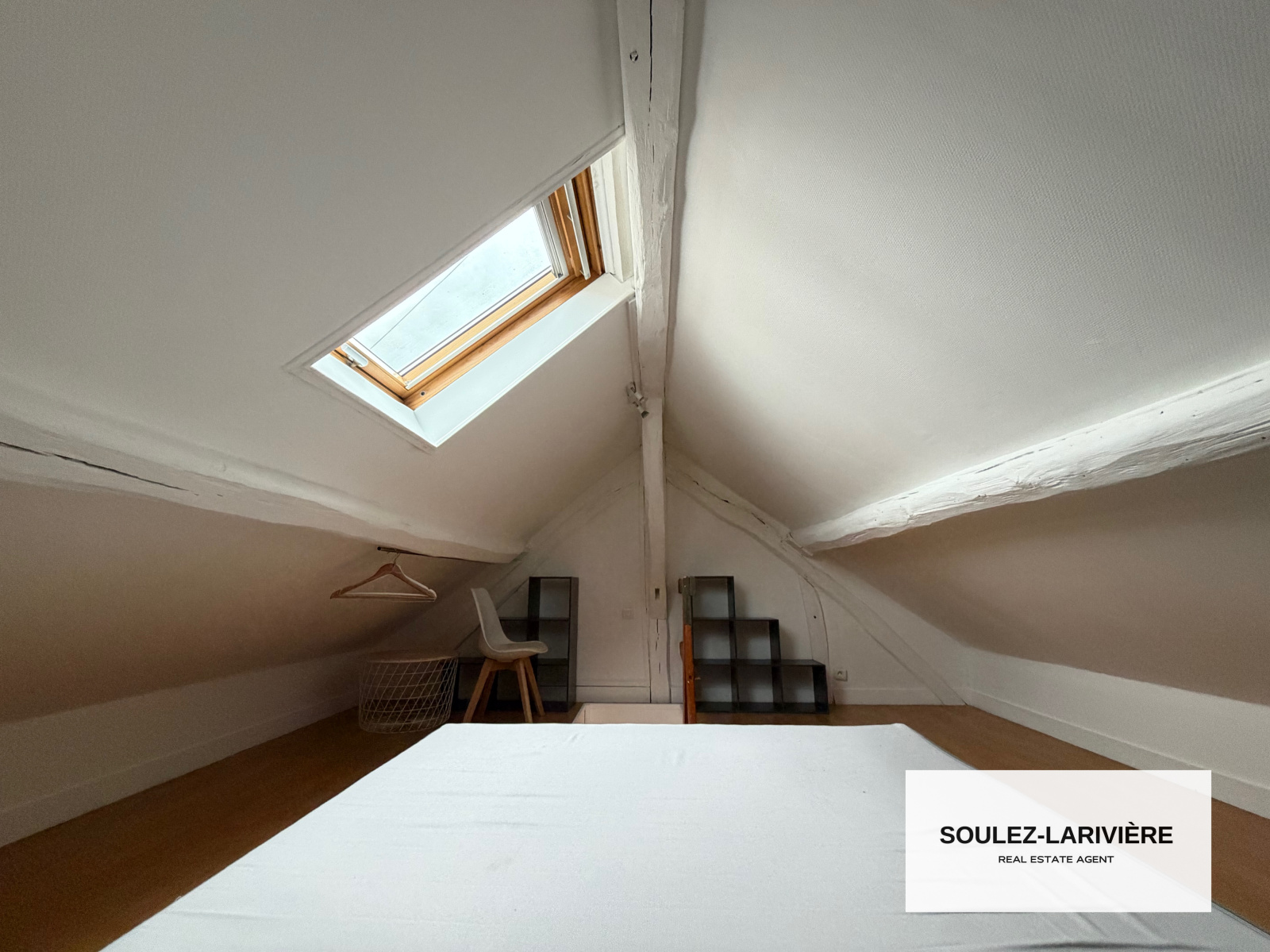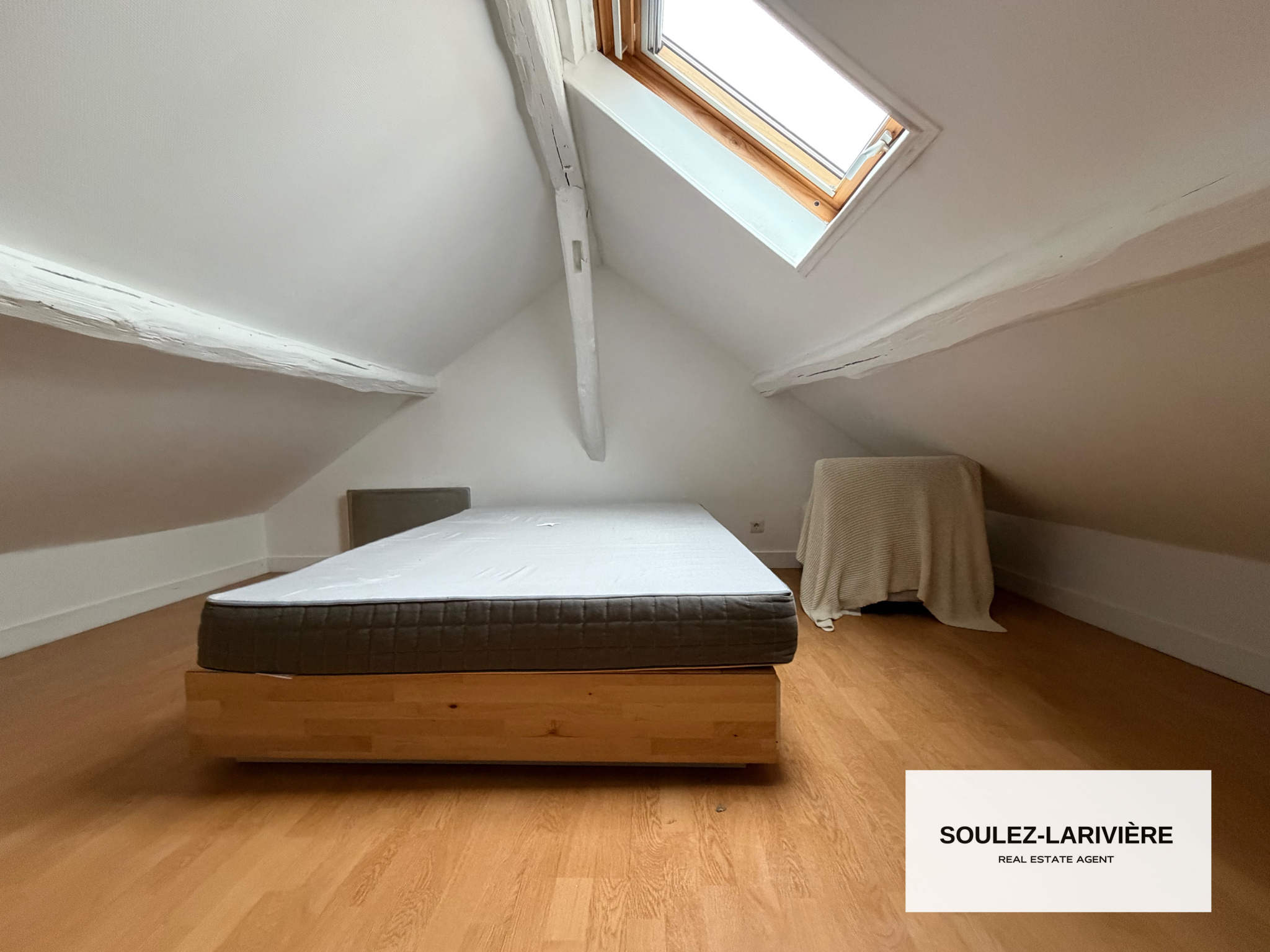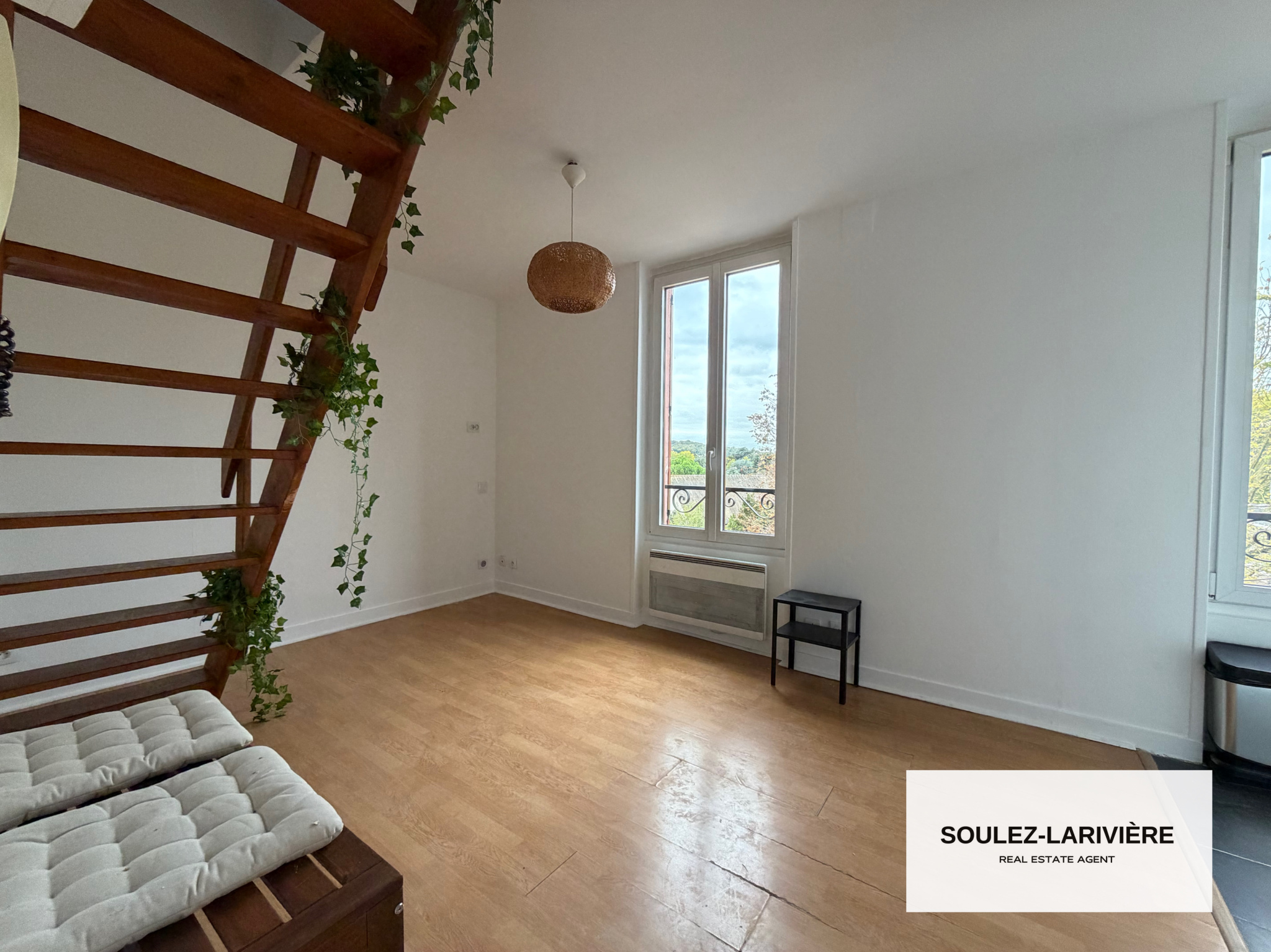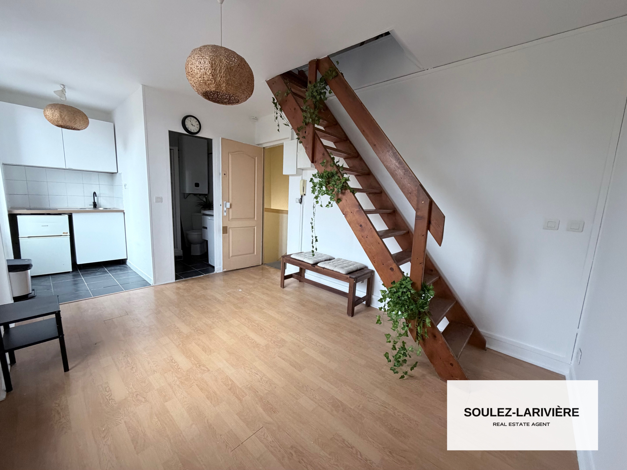 L'appartement se compose d'une entrée donnant un séjour avec deux grande fenètres, une cuisine ouverte équipée, une salle d'eau avec douche, Wc et vasque et coin buanderie et une mezzanine avec une chambre avec velux. Ce bien est idéal pour un primo-accédent ou investissement locatif. L'appartement est exposé Ouest, il est lumineux et bénéfice d'une vue dégagée.