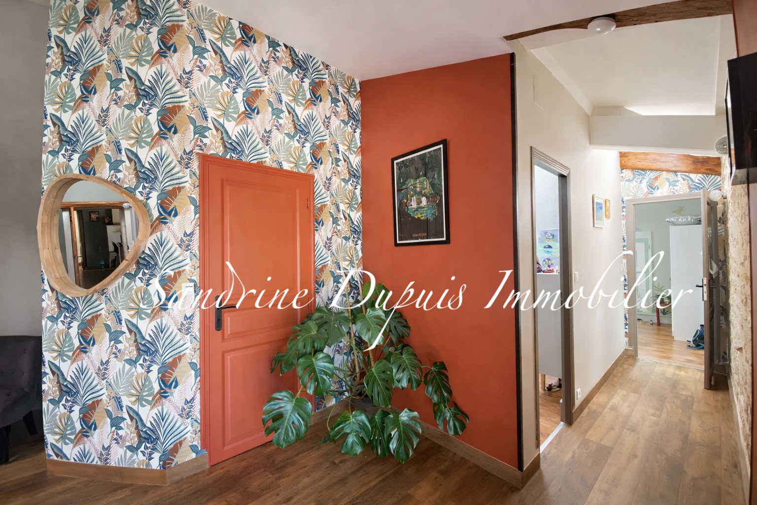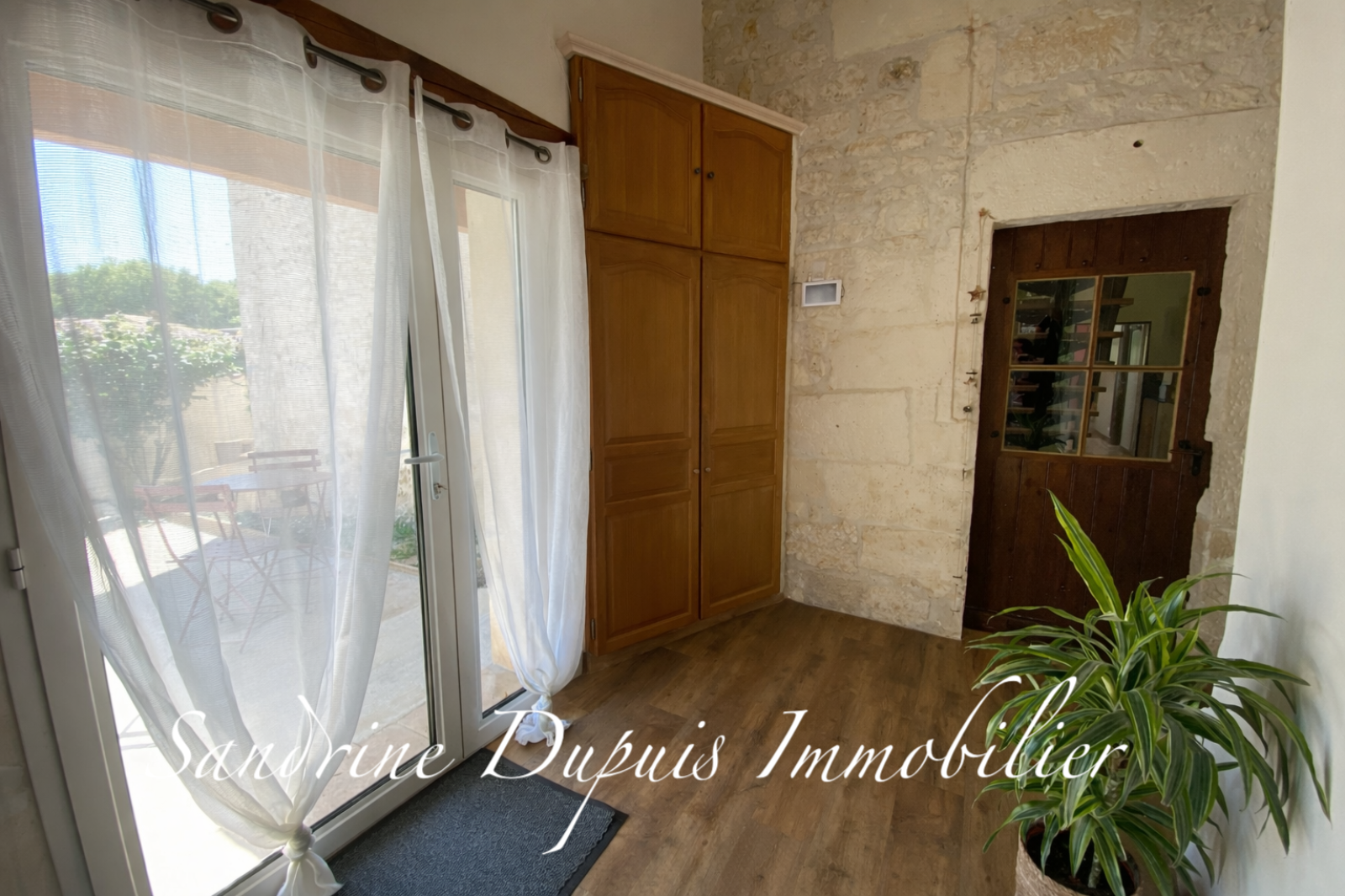 La maison propose une organisation fonctionnelle avec deux entrées indépendantes avec rangements, dont une disposant d’un espace bureau.