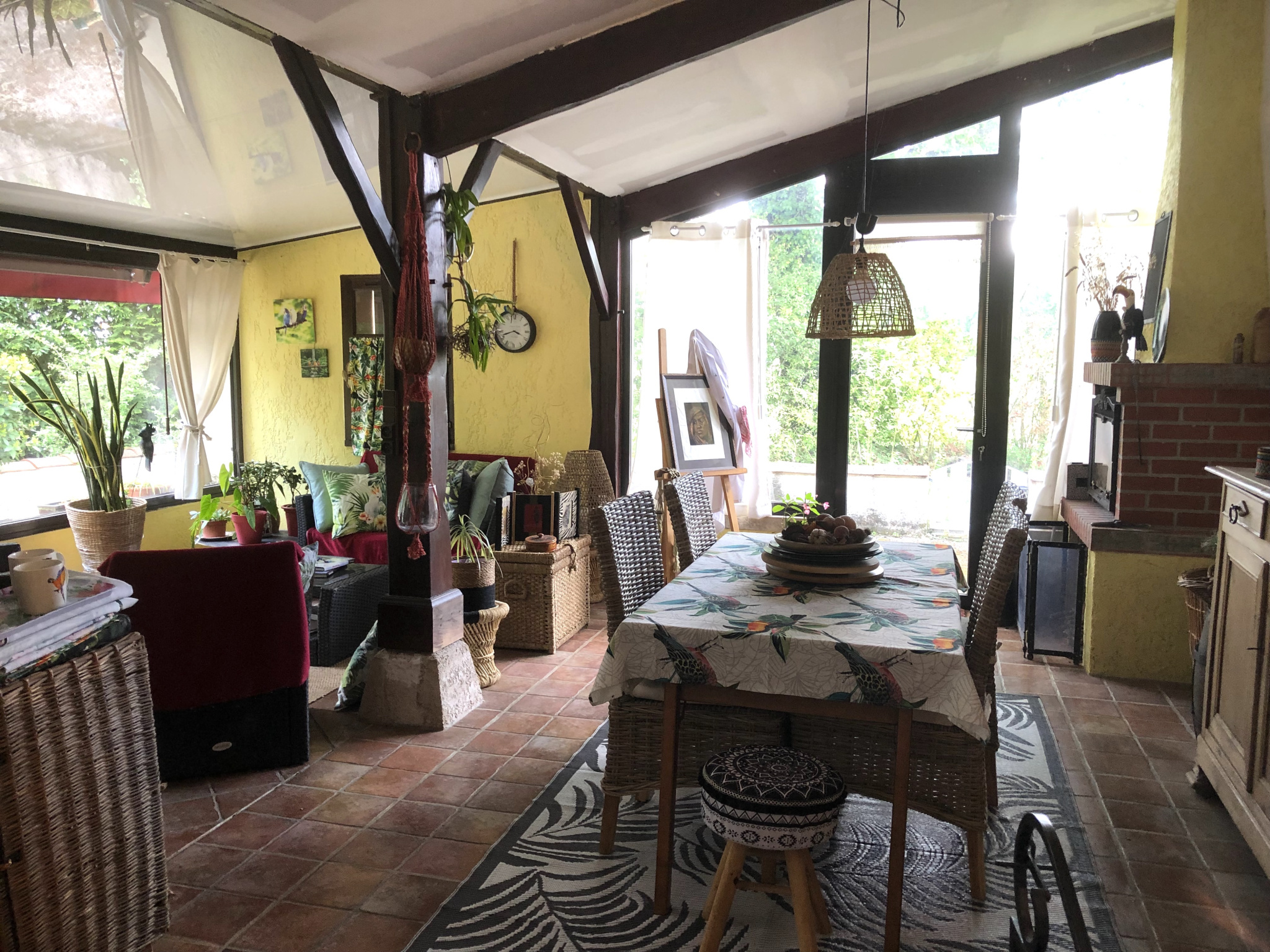 Dans la maison, vous découvrirez une belle entrée et un espace de vie de plus de 95m2, regroupant la cuisine, le séjour, le salon avec cheminé et une véranda.