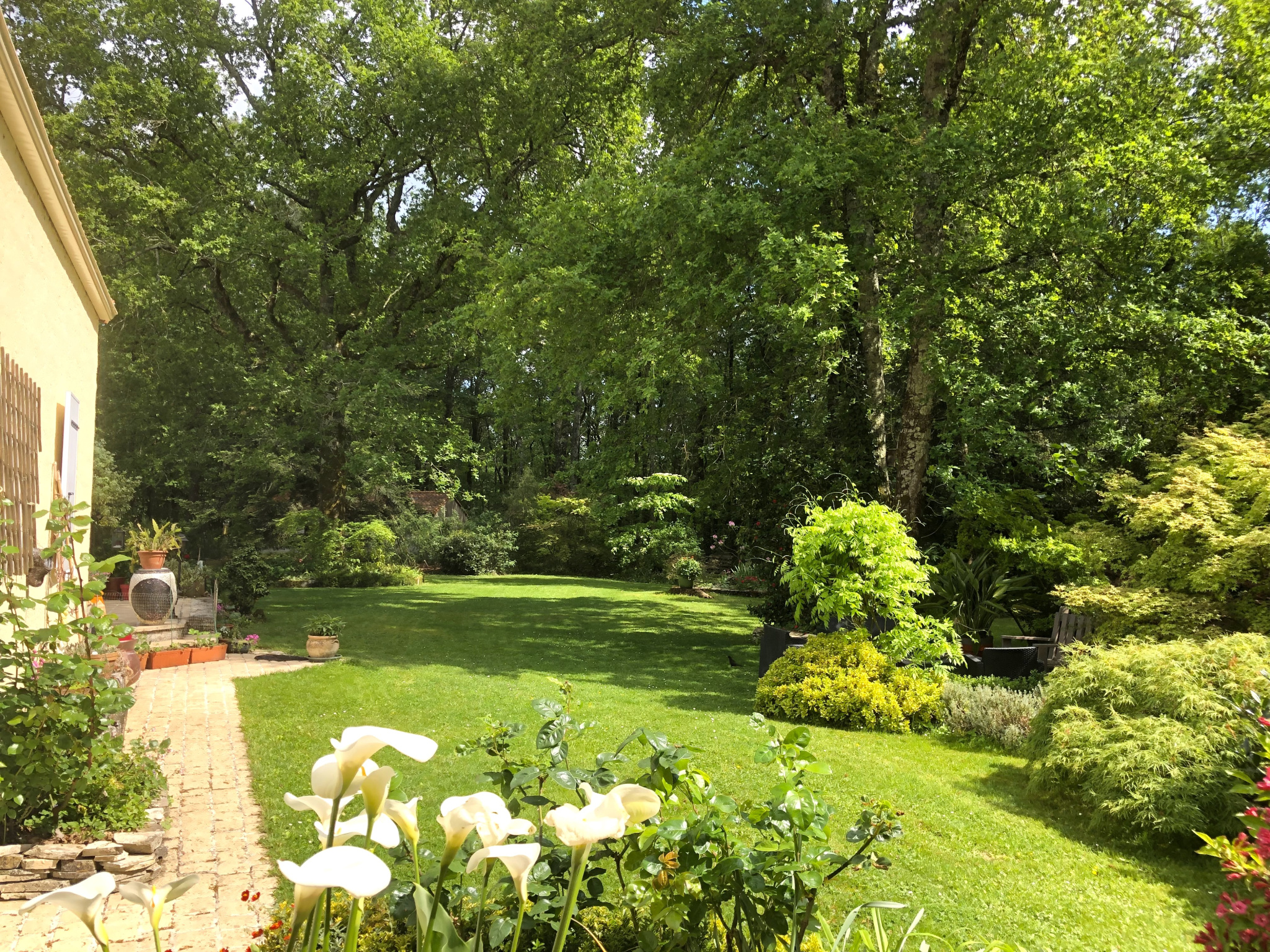 Vous serez immédiatement conquis par le magnifique jardin paysager et son bois avec un accès direct, idéal pour la cueillette des champignons ou la contruction de cabanes!