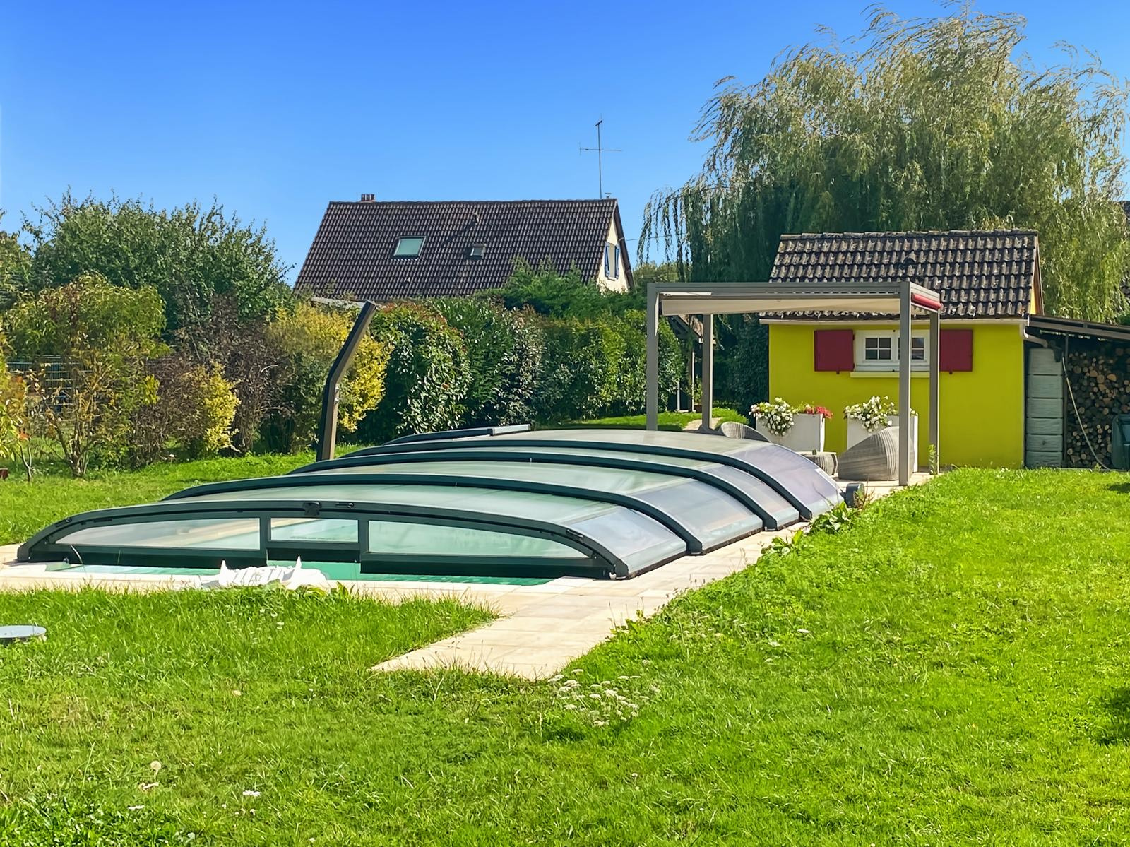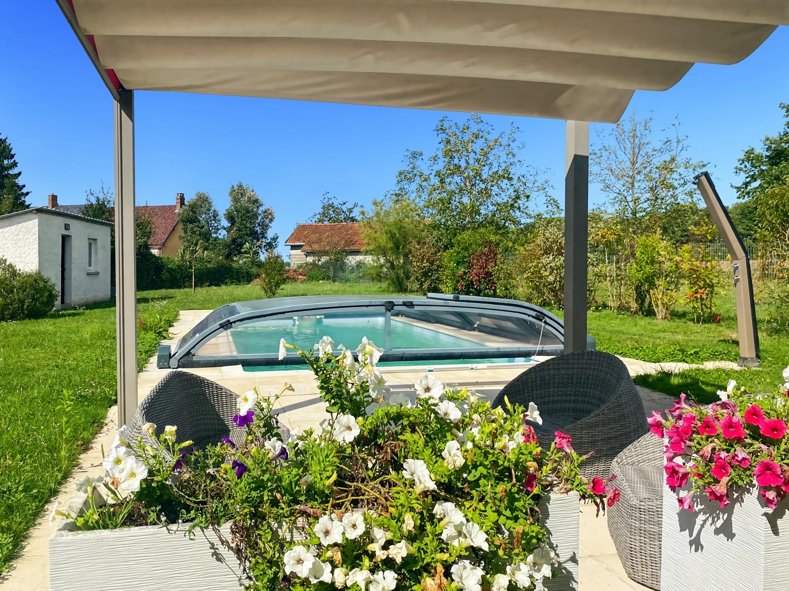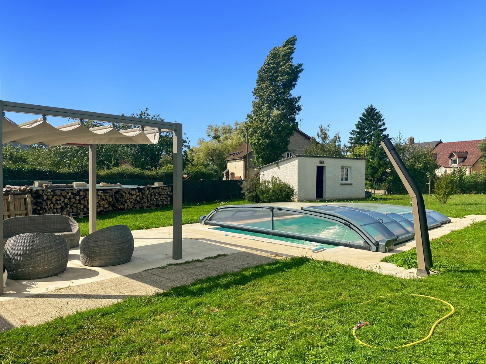 Situé à 10 km de Courtenay avec toutes commodités (supermarchés, écoles, salle de sports, etc..) et à quelques km du centre-bourg de Douchy-Montcorbon offrant boucherie, épicerie générale, pharmacie, coiffeur et boulangerie, ce joli pavillon de construction traditionnelle se compose d’une entrée par véranda donnant sur un séjour-salon lumineux avec cuisine américaine aménagée et équipée, de trois chambres dont deux équipées de placards, d’un dégagement, d’une salle d’eau et de WC indépendants. Le chauffage est assuré par radiateurs électriques complétés d’une cheminée insert avec un répartiteur. Côté extérieur, vous trouverez trois abris de jardin, une piscine chauffée par pompe à chaleur de 8 m x 4 m avec une profondeur de 1,10 m à 1,50 m, un liner changé en 2024, douche solaire et abris piscine motorisé, le tout dans un agréable jardin arboré avec arbres fruitiers et entièrement clôturé offrant un cadre campagnard au calme. Parmi les équipements complémentaires, on note la fibre installée, une borne pour voiture électrique une terrasse en bois composite ainsi qu’un store banne motorisé.