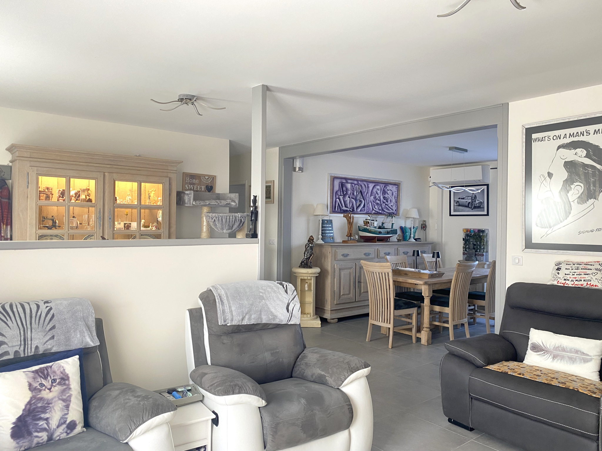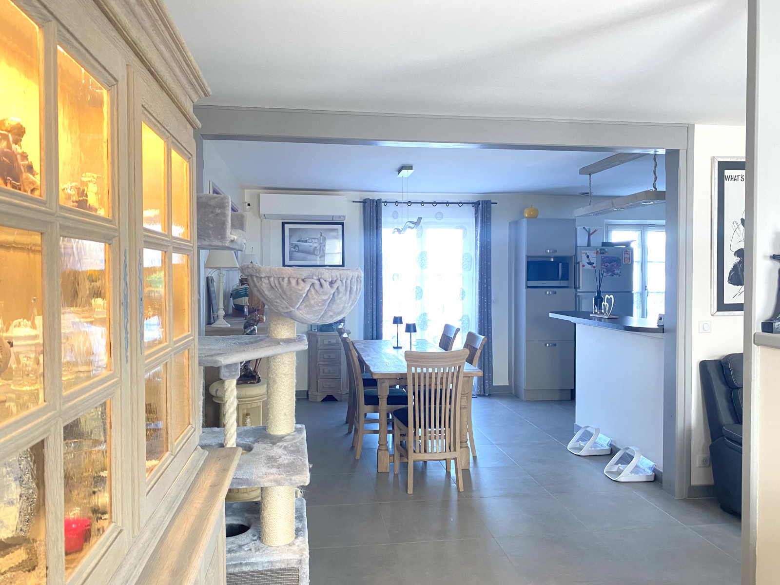 À découvrir, superbe pavillon contemporain haut de gamme construit en 2016, offrant des prestations énergétiques rares. Implantée sur un terrain clos et paysagé de 1 409 m², avec deux accès par portails motorisés, éclairages extérieurs automatiques et arrosage intégré, cette propriété allie confort, modernité et autonomie. La maison propose une entrée ouvrant sur un vaste séjour salle à manger lumineux avec cuisine américaine aménagée et équipée, cellier, dégagement desservant trois chambres, une salle de bains avec douche et baignoire, WC et rangements. À l’étage, un grand palier de 30 m² ainsi qu’une pièce de 55 m² avec WC, actuellement à usage de bureau, offrant de nombreuses possibilités d’aménagement. Côté extérieur, terrasse, piscine hors sol chauffée (5 x 2,5 m), grand garage de 70 m² motorisé et dépendance isolée de 30 m² complètent l’ensemble. Chauffage par pompe à chaleur géothermique, plancher chauffant, split air/air, ventilation double flux avec puits canadien, 36 panneaux solaires (15 kW ) assurant une autonomie énergétique, maison entièrement connectée et pilotable à distance, tous les bâtiments raccordés au réseau internet et Wi-Fi, caméras et alarme. Un bien d’exception, sans travaux, idéal pour les amateurs de maisons connectées, autonomes et performantes.