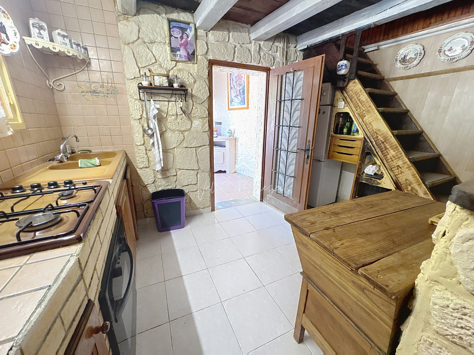 Carrelage, Evier, Plaque gaz, four? frigo, Micro ondes et cafetière
