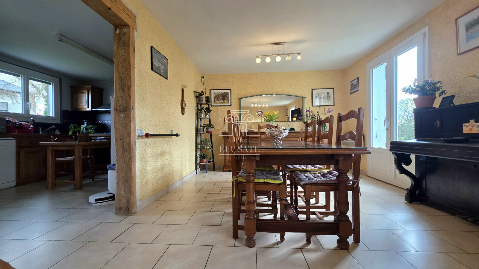 La propriété dispose également d’un garage, un carport et d’un terrain clos et arboré d’environ 2100 m².
