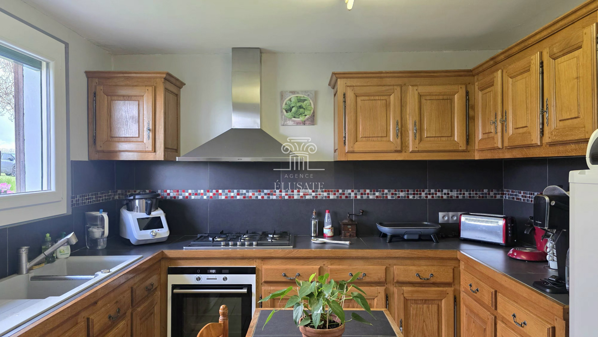 Agence Élusate vous propose à la vente cette maison de plain pied en campagne de 81 m² comprenant une pièce de vie avec cheminée/insert, une jolie cuisine en chêne massif, deux chambres, une salle d’eau avec douche à l’italienne et un wc indépendant.